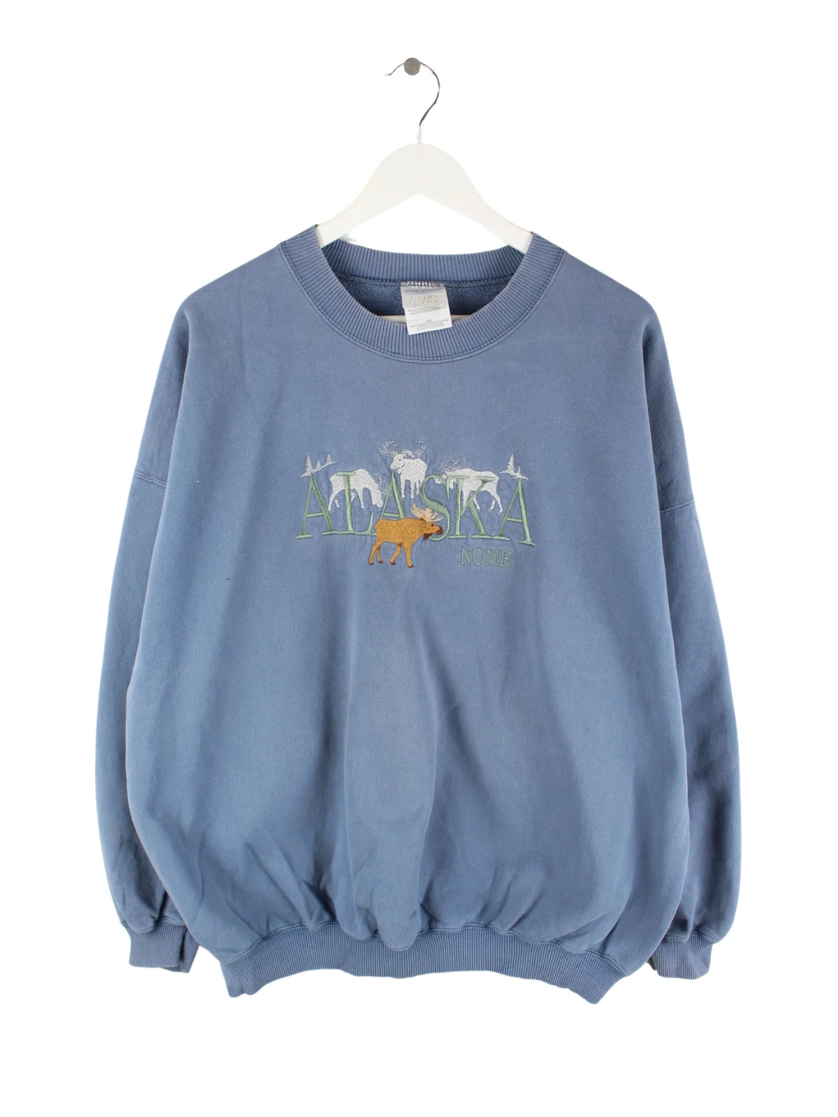 Gildan 90s Vintage Alaska Embroidered Heavy Sweater Blau XXL
