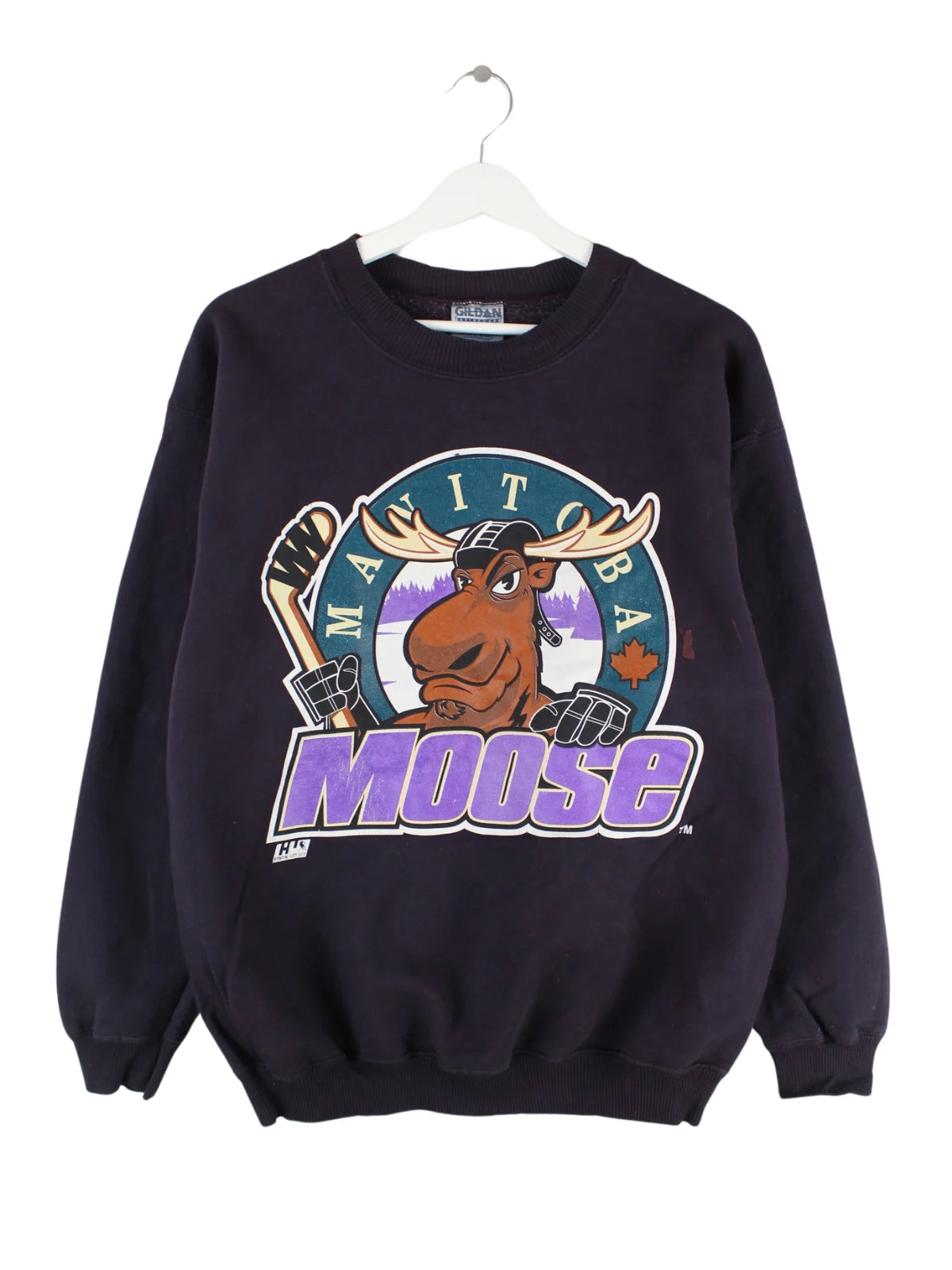 Gildan 90s Vintage Manitoba Moose Print Sweater Blau M