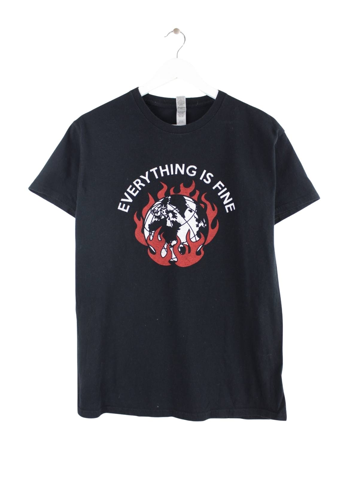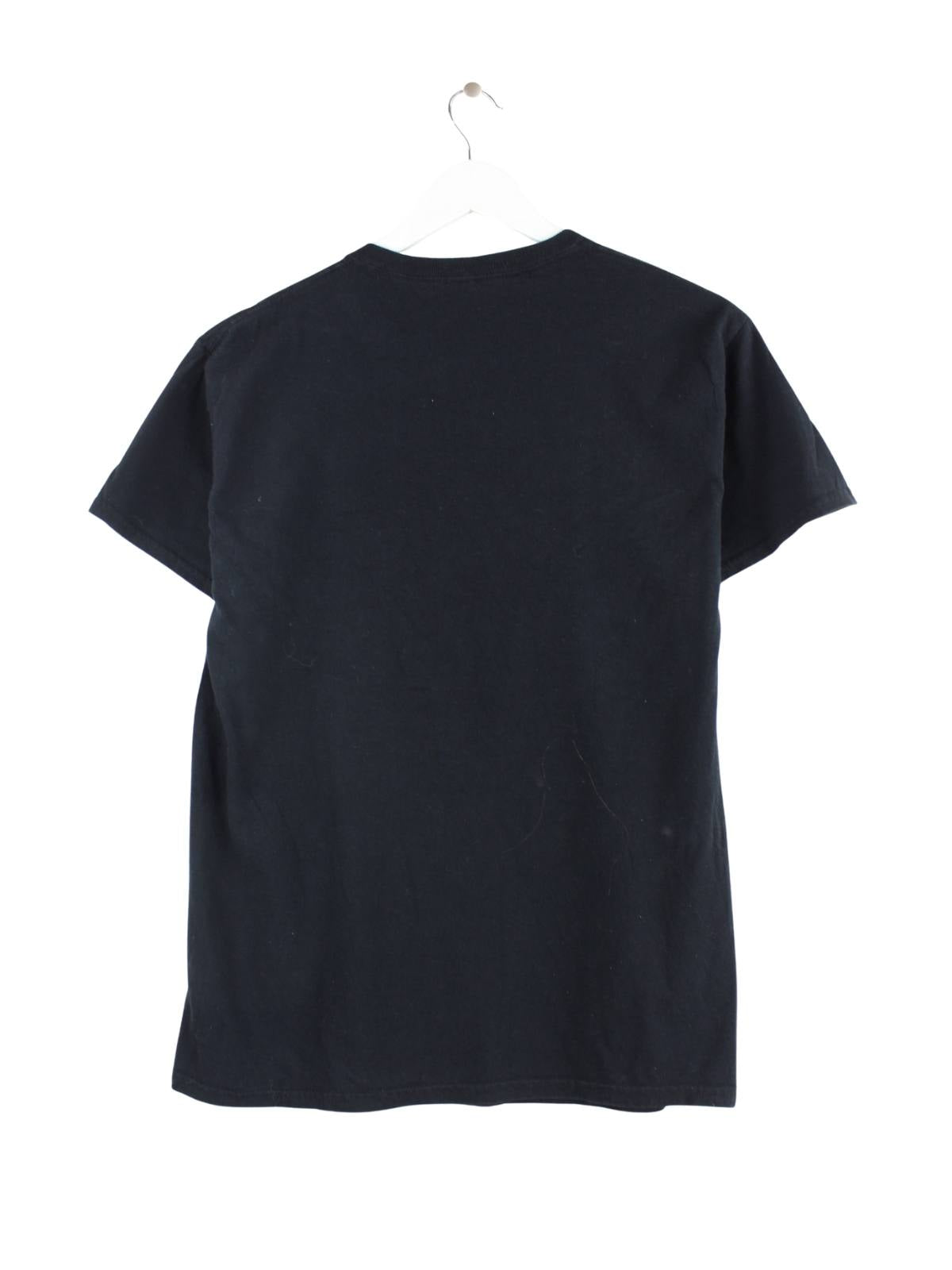 Schwarzes T-Shirt der Marke Gildan in Größe M. Es ist aus Baumwolle und in sehr gutem Zustand in Stock. Mit schickem World Print.