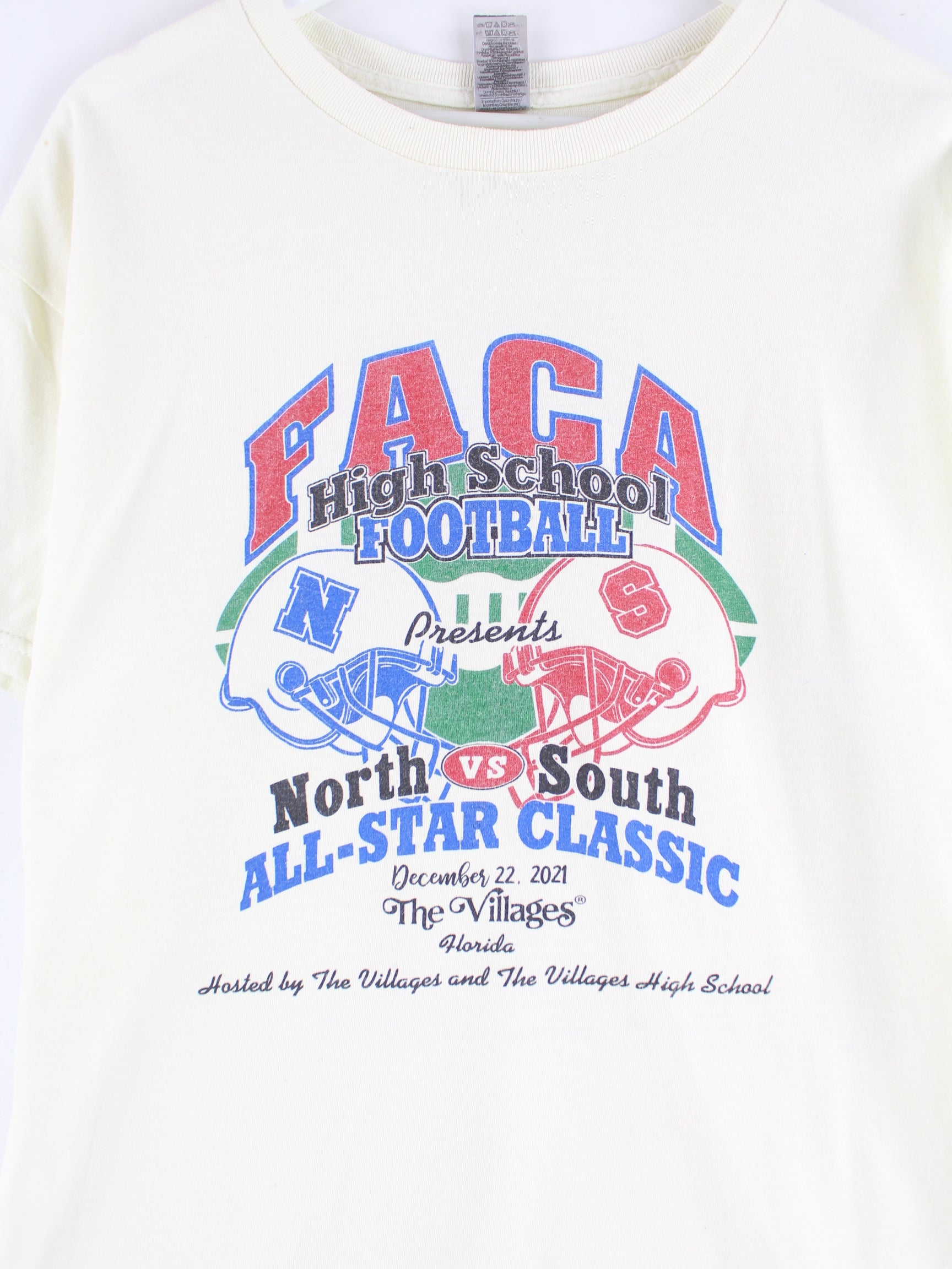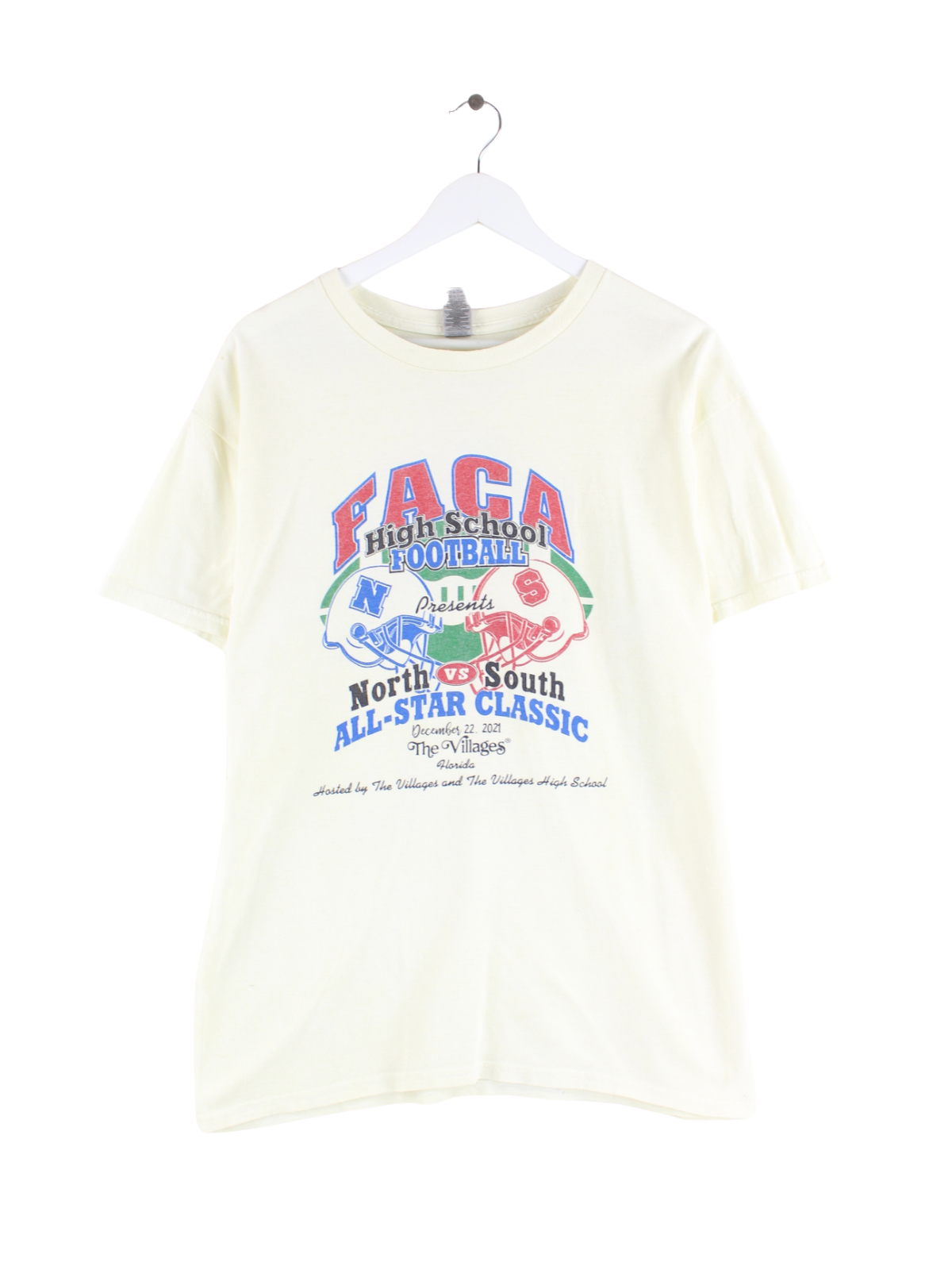 Beige T-shirt from the brand Gildan in size L. It is made of cotton and is in very good condition. With a great football print.
