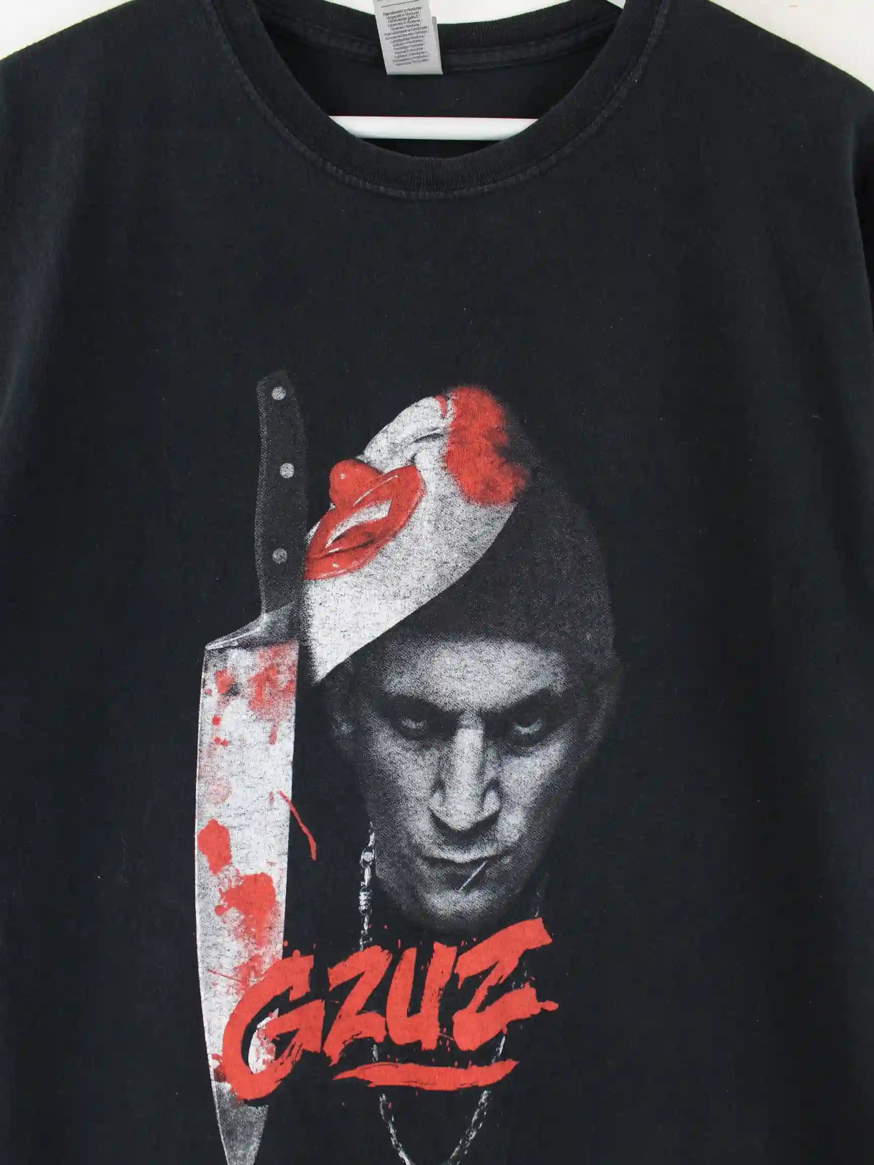 Schwarzes T-Shirt vom Brand Gildan in Größe XL. Es ist aus Baumwolle hergestellt und in sehr gutem Zustand zu haben. Mit tollem Gzuz Print.
