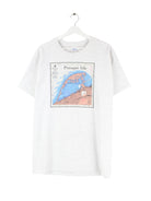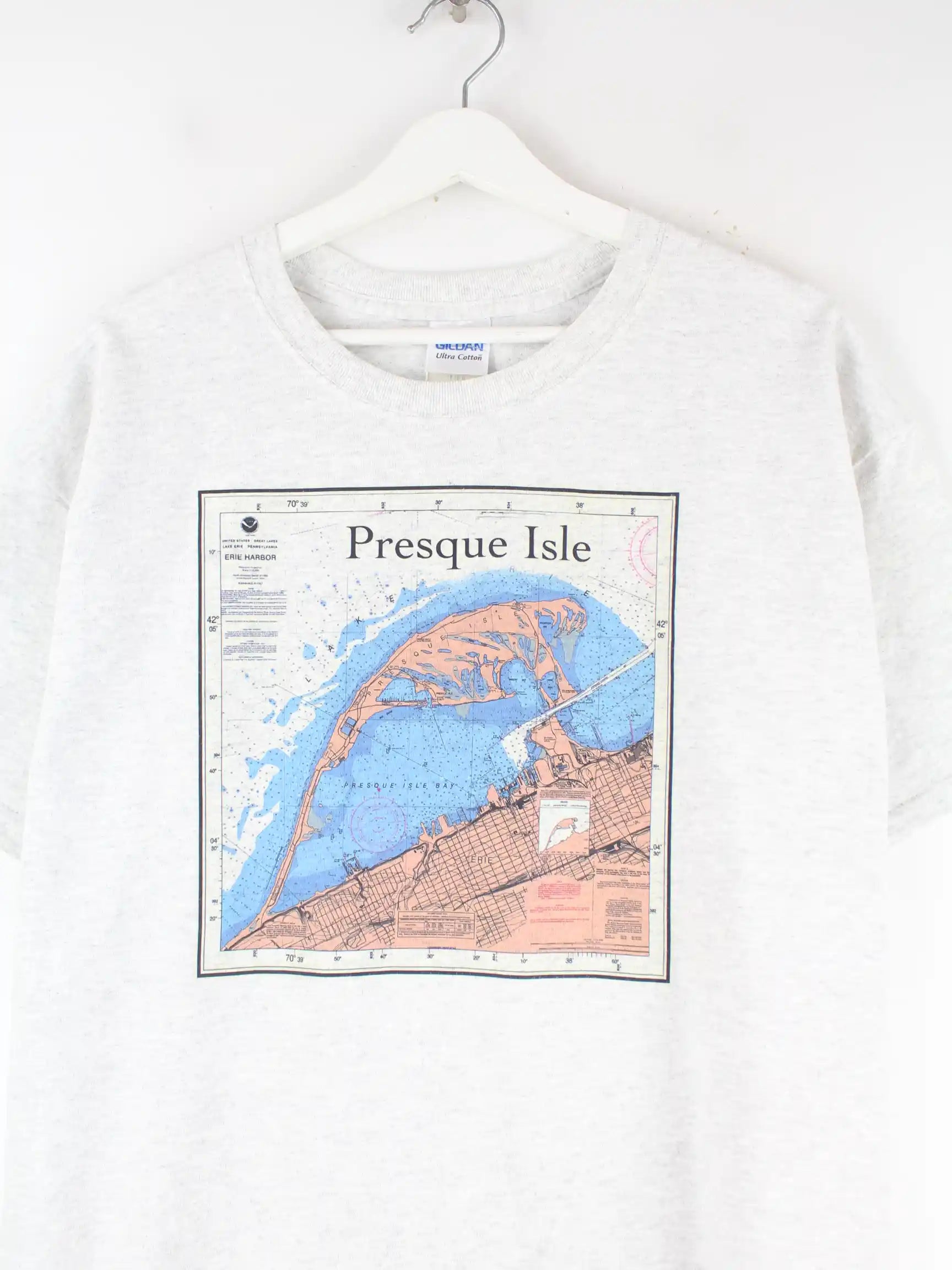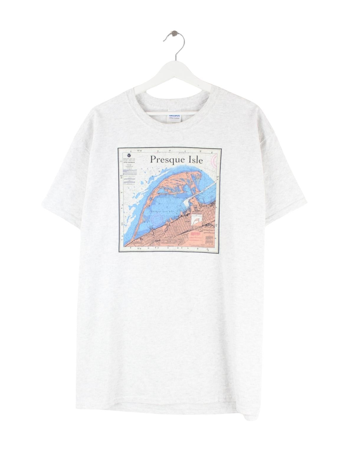 T-Shirt von Gildan in Größe L. Es ist aus Baumwolle angefertigt und in Grau zu haben. Mit schickem Map Print.