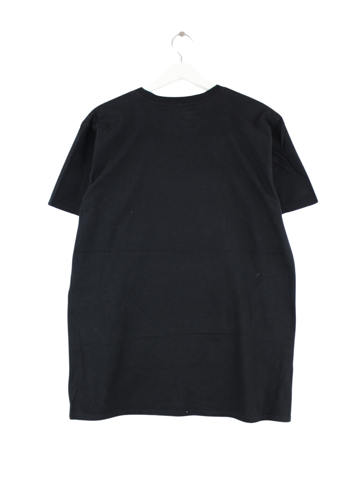 T-shirt from the label Gildan in size L. It is made of cotton and available in black. With a beautiful model print.