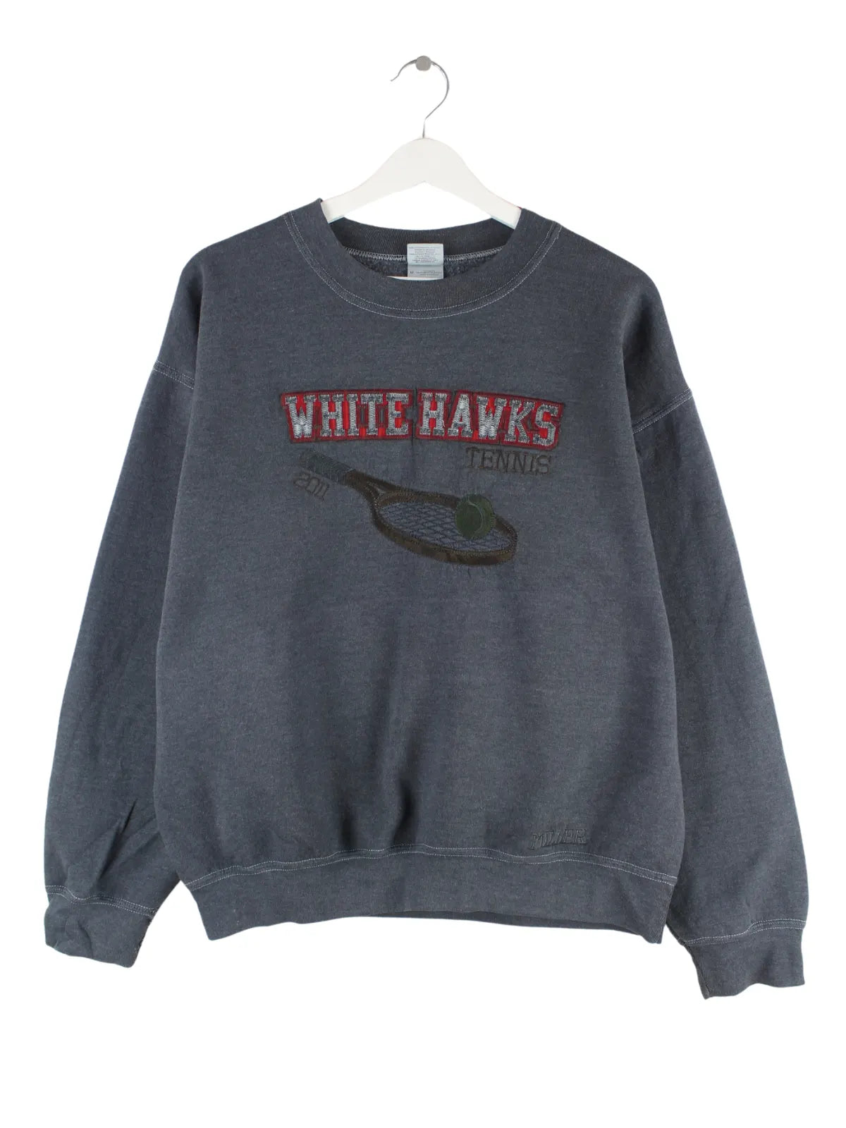 Gildan White Hawks Tennis Embroidered Sweater Grau M