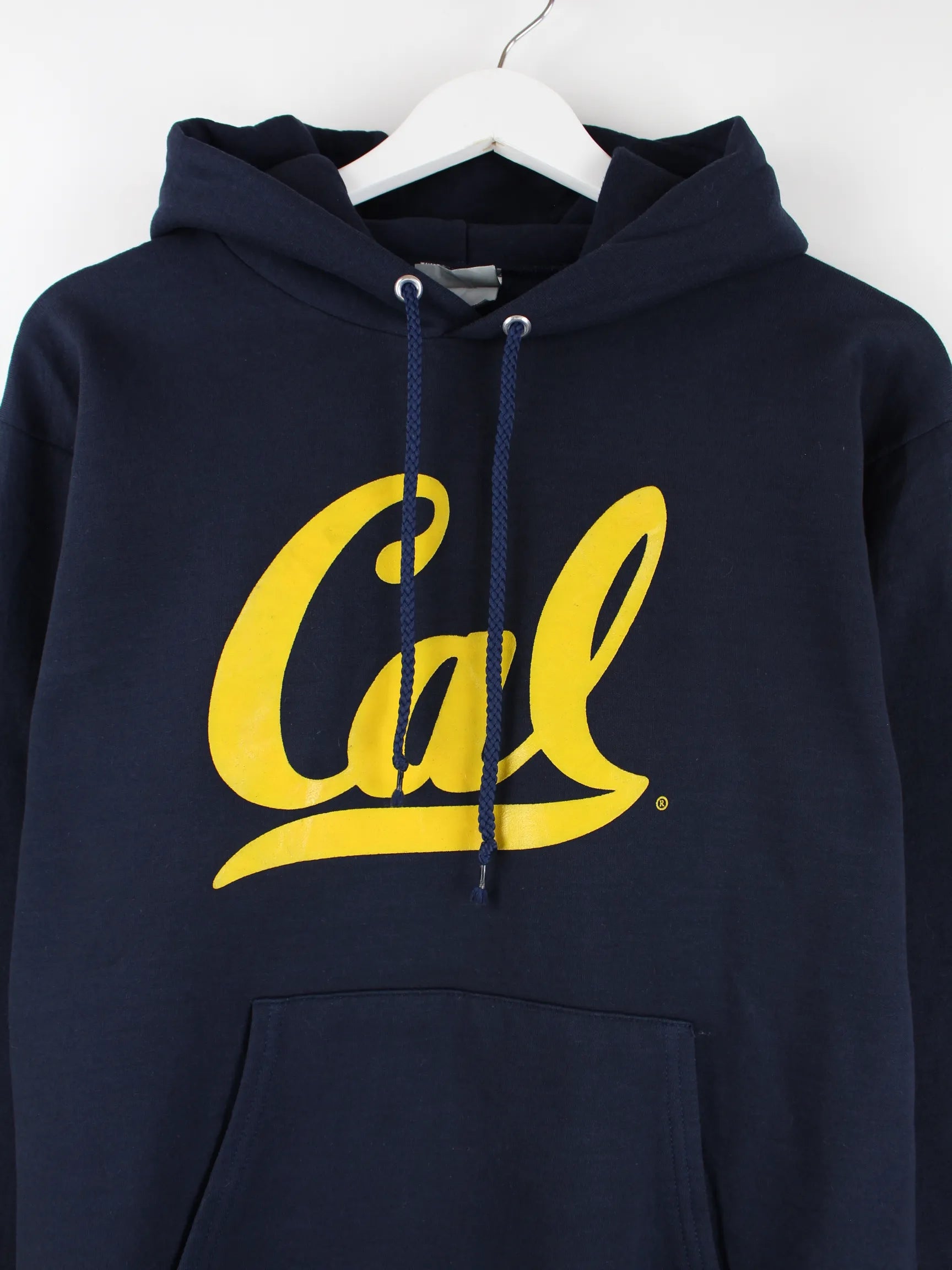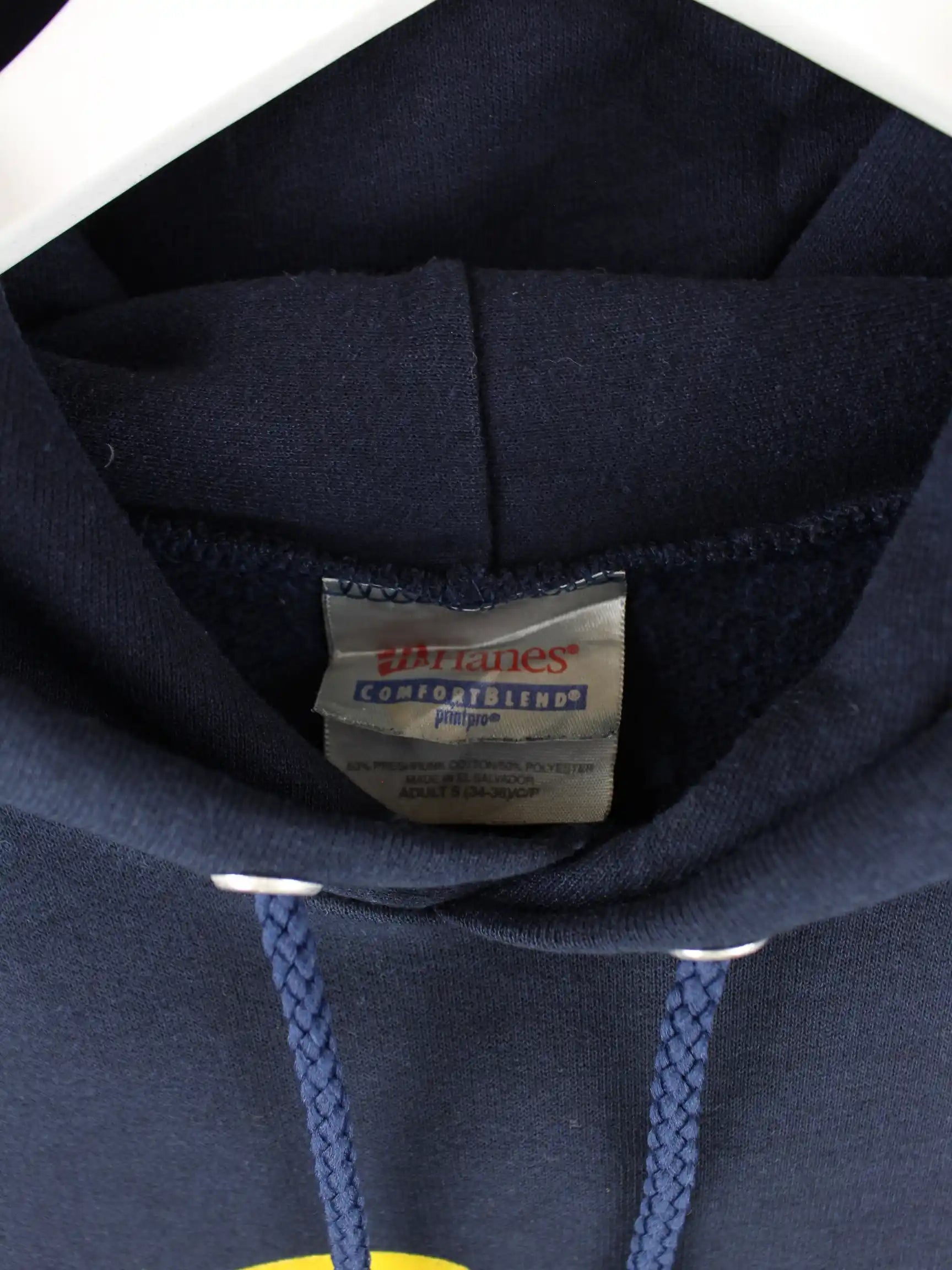 Hoodie der Marke Hanes in Größe S. Er ist aus einer Baumwollmischung hergestellt und in Blau lieferbar. Mit tollem Cal Print.