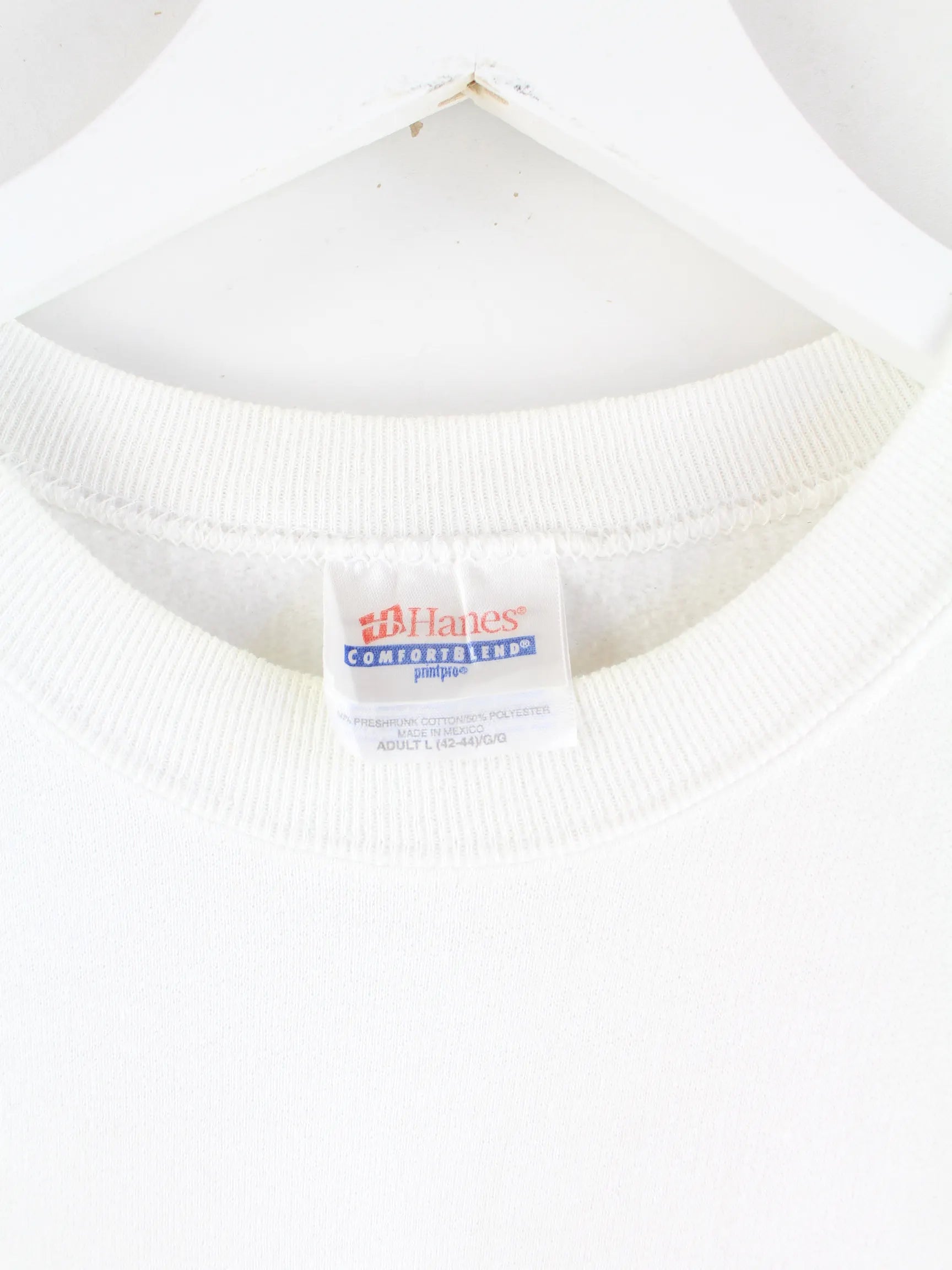 Sweater von Hanes mit Stick in Größe L. Er ist aus einer Baumwollmischung produziert und in Weiß zu bekommen.
