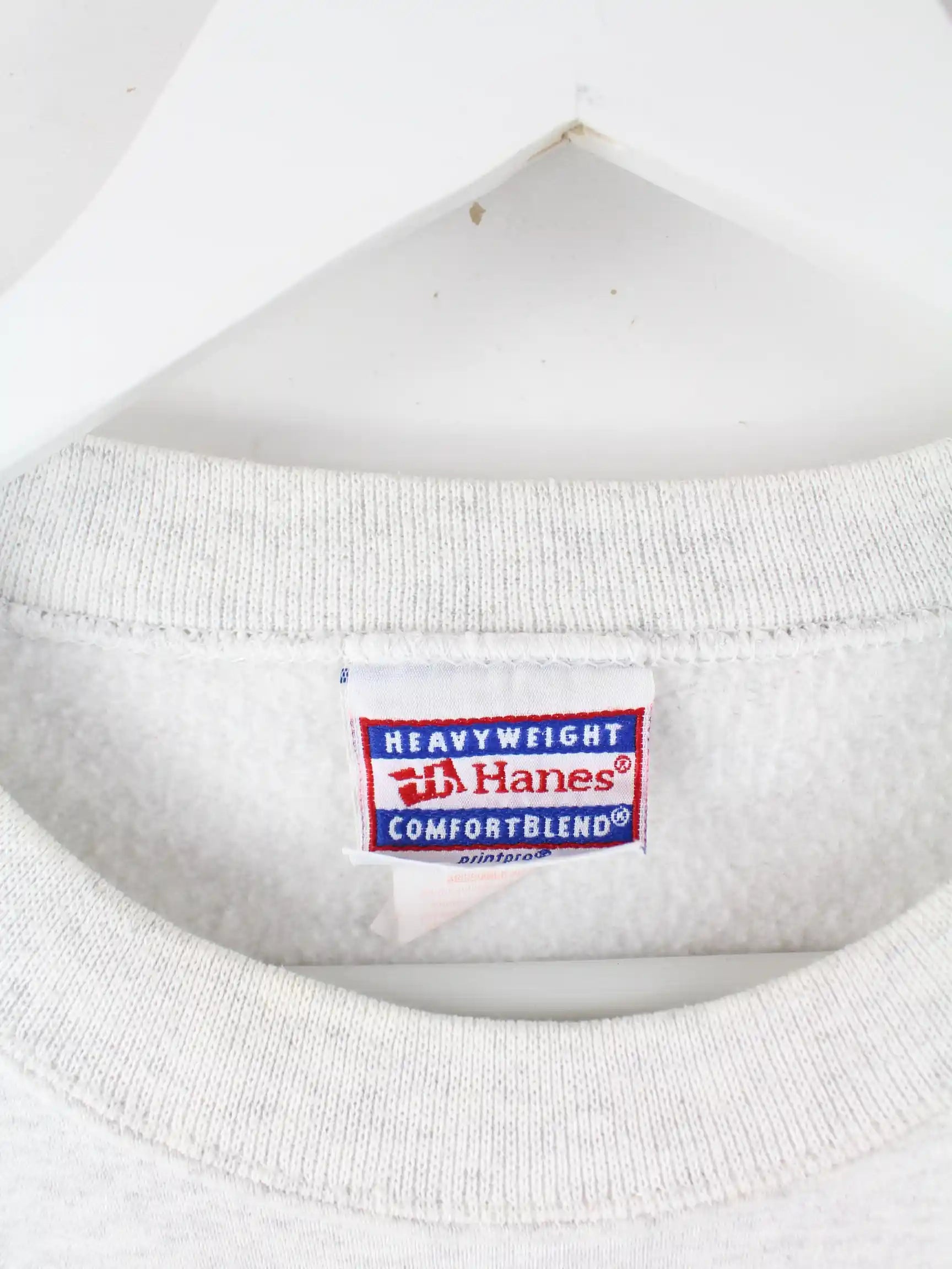 Sweater vom Brand Hanes in Größe L. Er ist aus einer Baumwollmischung und in Grau in Stock. Mit tollem Fest Print.
