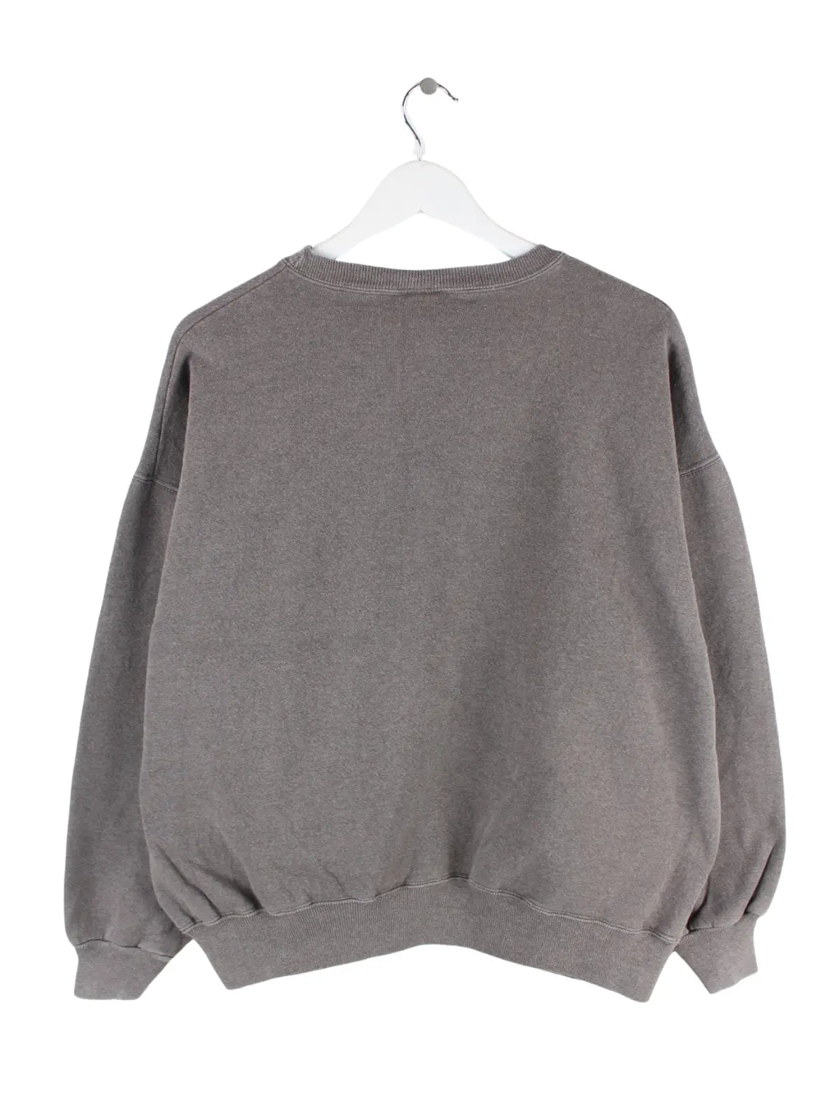 Grauer Sweater mit gesticktem Logo von Hanes aus den 90'ern in Größe XL. Er ist aus einer Baumwollmischung hergestellt und in sehr gutem Zustand bei uns zu bekommen.