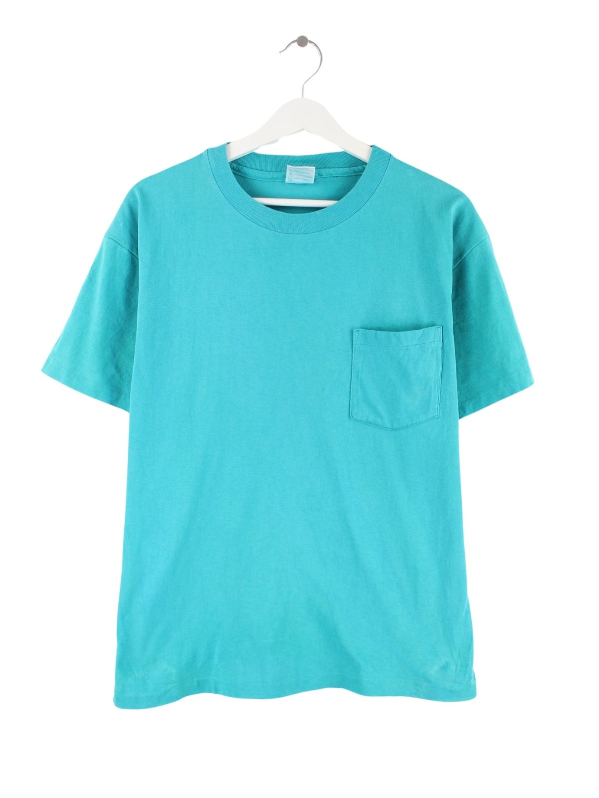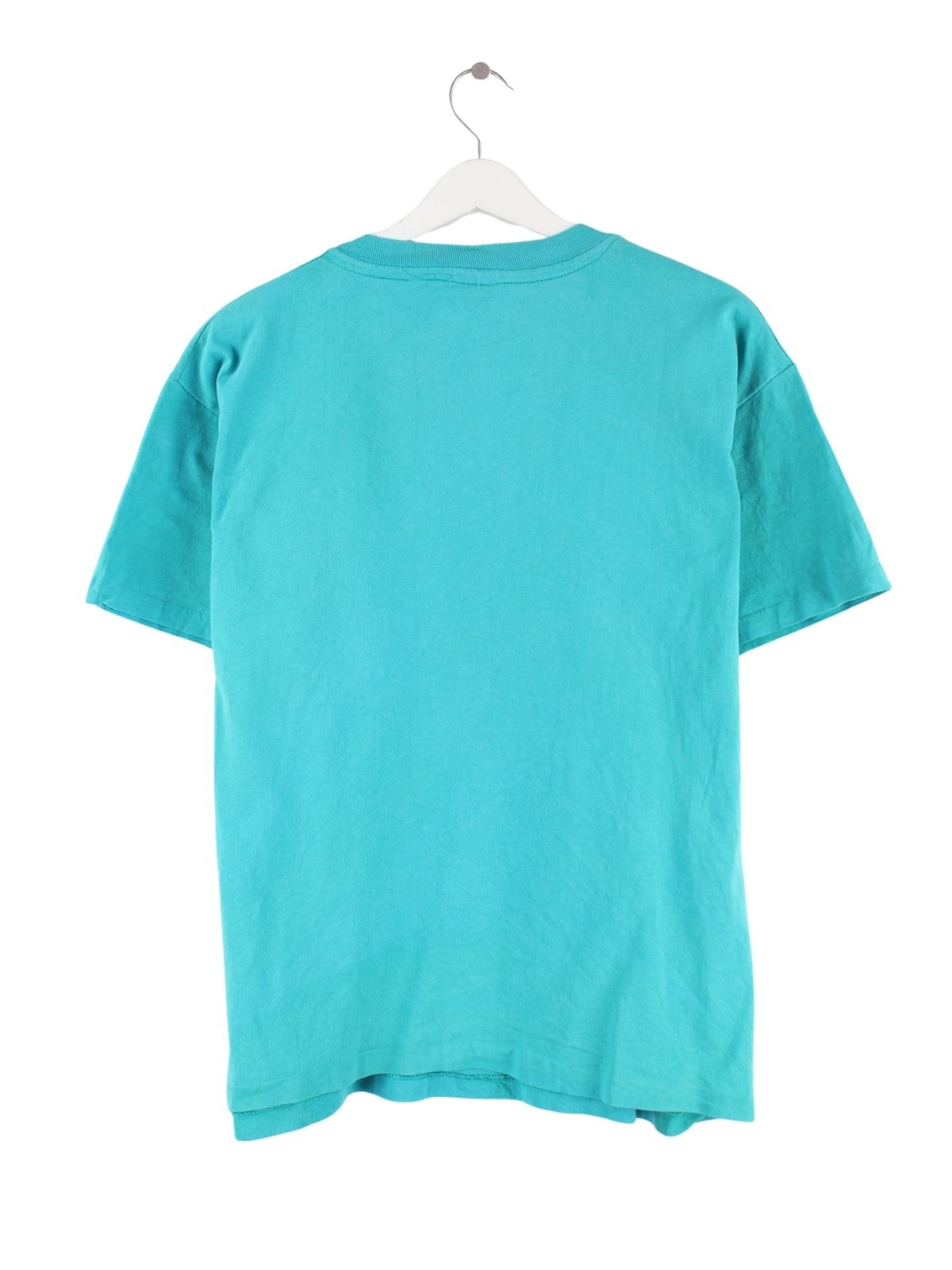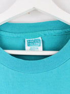 Türkisfarbenes T-Shirt von Hanes aus den 90'ern in Größe M. Es ist aus Baumwolle und in gutem Zustand im Bestand.