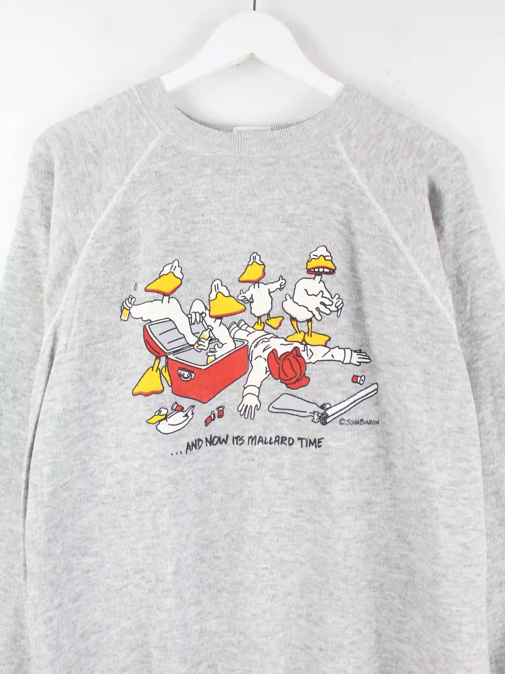Sweater aus dem Hause Hanes in Größe XL aus den 90'ern. Er ist aus einer Baumwollmischung hergestellt und in Grau im Angebot. Mit chiquem Mallard Print.
