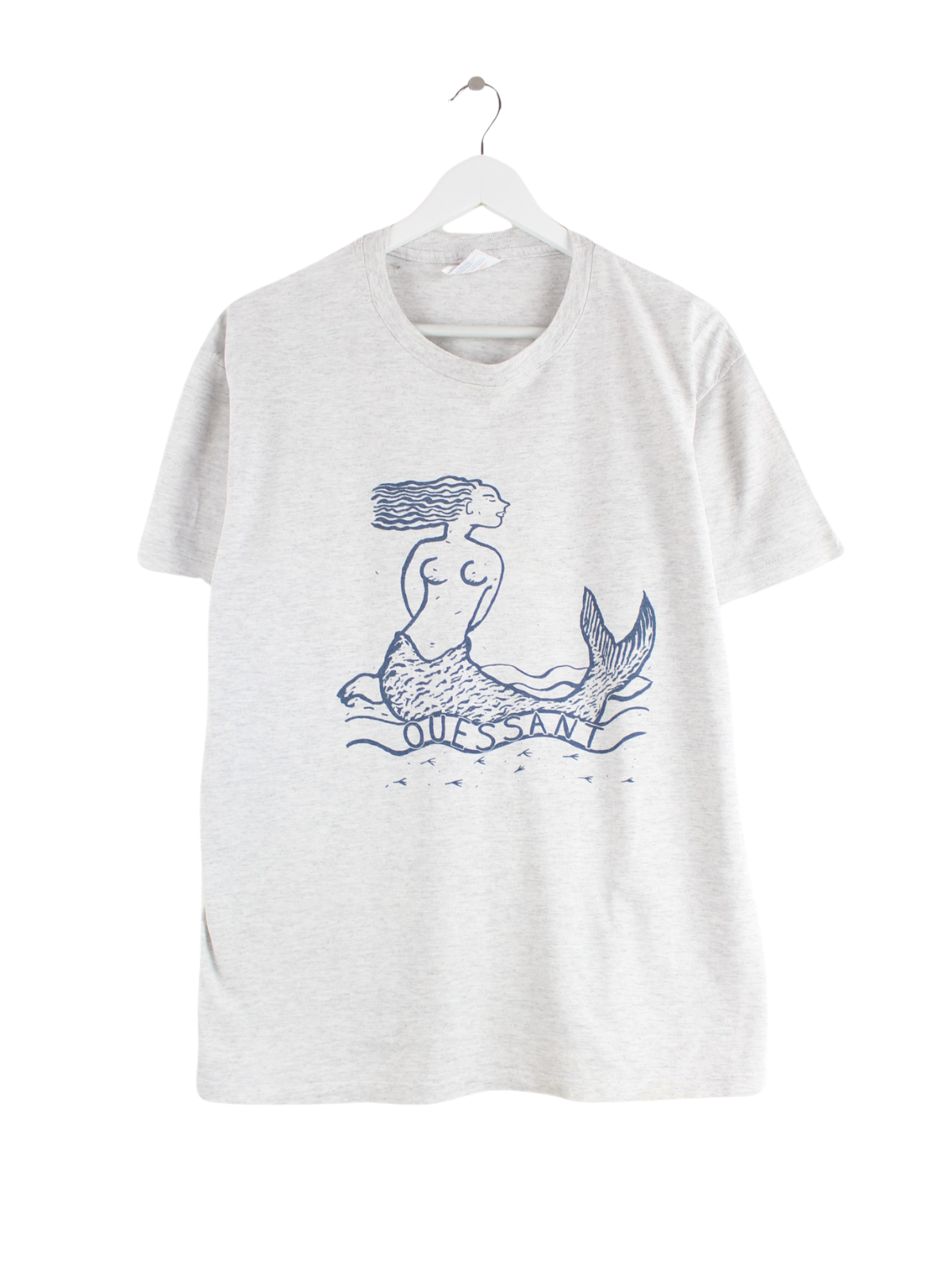 Grey T-shirt from the brand Hanes from the 90's in size L. It is made of cotton. We would describe the condition as 'fine' (see pictures). With a chic mermaid print.