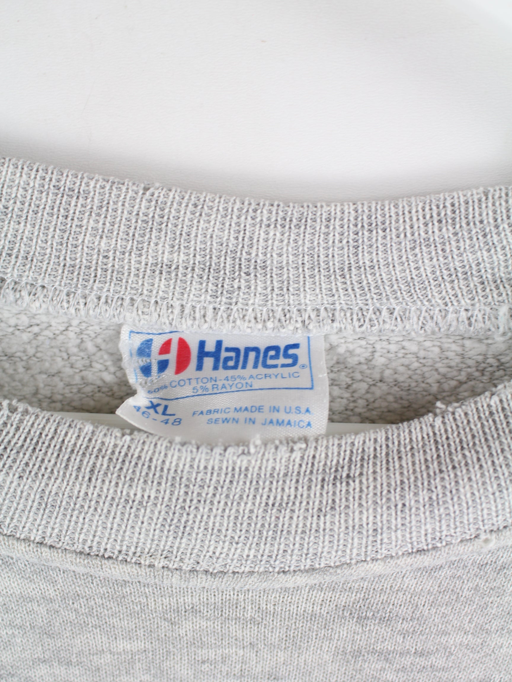 Sweater der Marke Hanes in Größe M aus den 90'ern. Er ist aus einer Baumwollmischung angefertigt und in Grau im Angebot. Mit schickem Police Print.