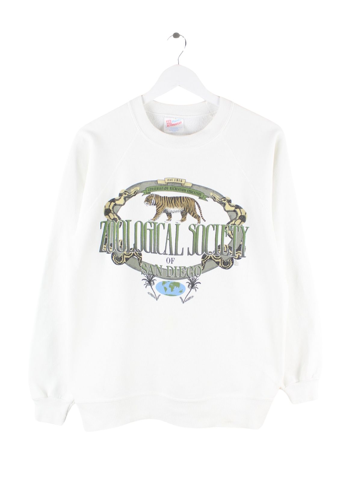 Hanes 90s Vintage San Diego Zoo Sweater Weiß M