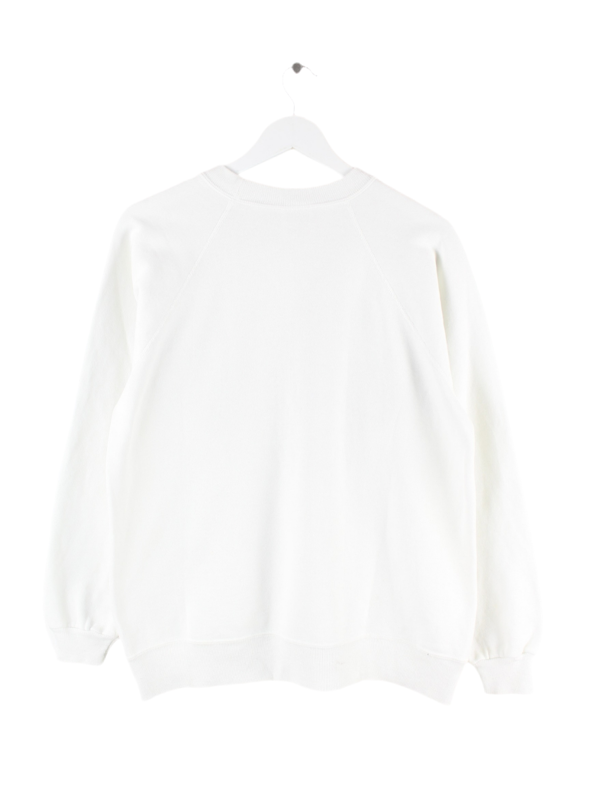 Weißer Sweater von Hanes aus den 90'ern in Größe M. Er ist aus einer Baumwollmischung gemacht und in gutem Zustand im Bestand.