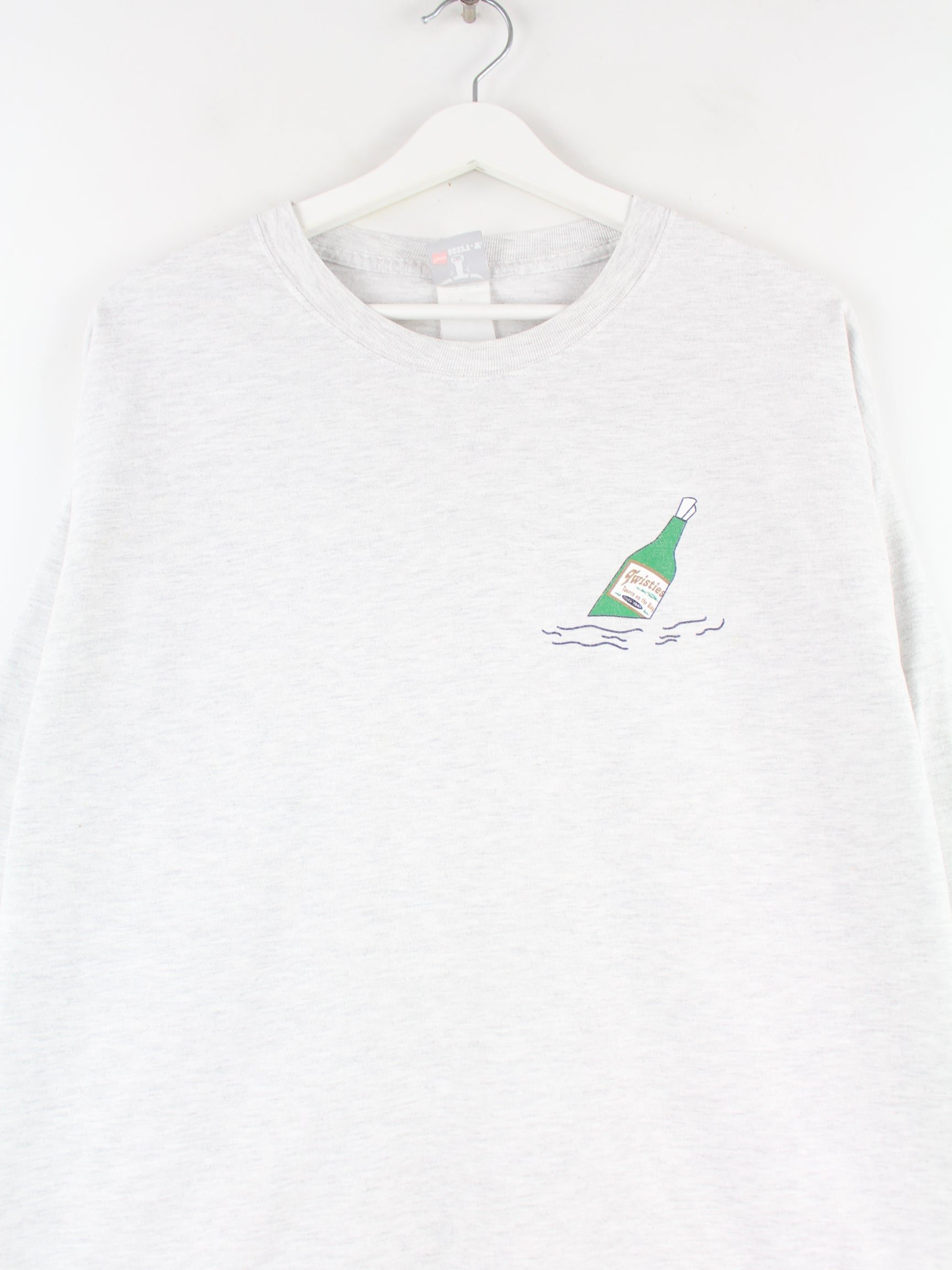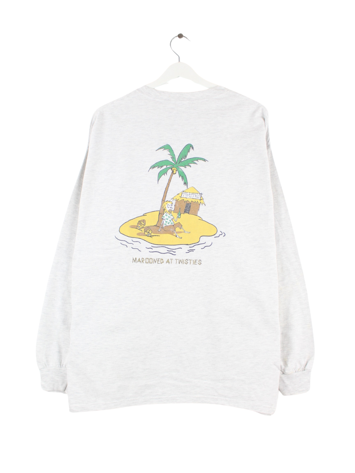 Sweatshirt from the brand Hanes in size XL. It is made of cotton and is available from us in grey. With a beautiful island print.