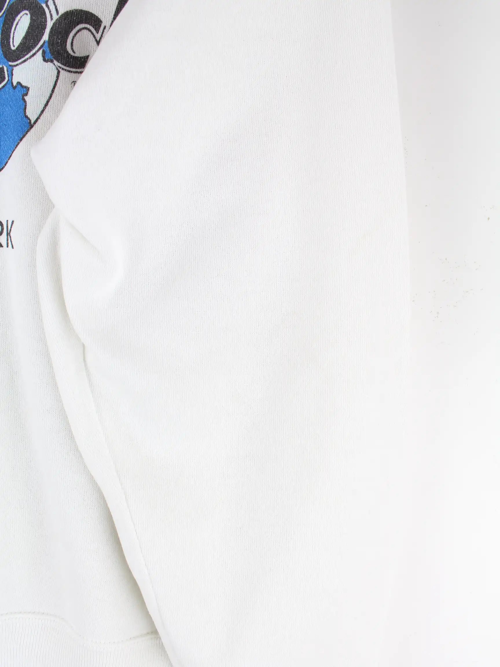 Weißer Sweater vom Label Hard Rock Cafe aus den 90'ern in Größe M. Er ist aus einer Baumwollmischung und in gutem Zustand zu bekommen. Mit schickem York Print.