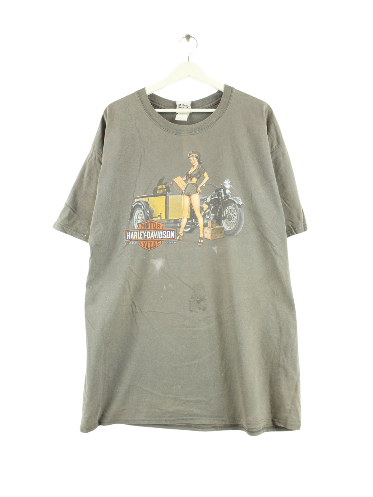 Grey T-shirt by Harley Davidson from the 90's in size 3XL. It is made of cotton. We would describe the condition as 'fine' (see pictures). With a chic Miami print.