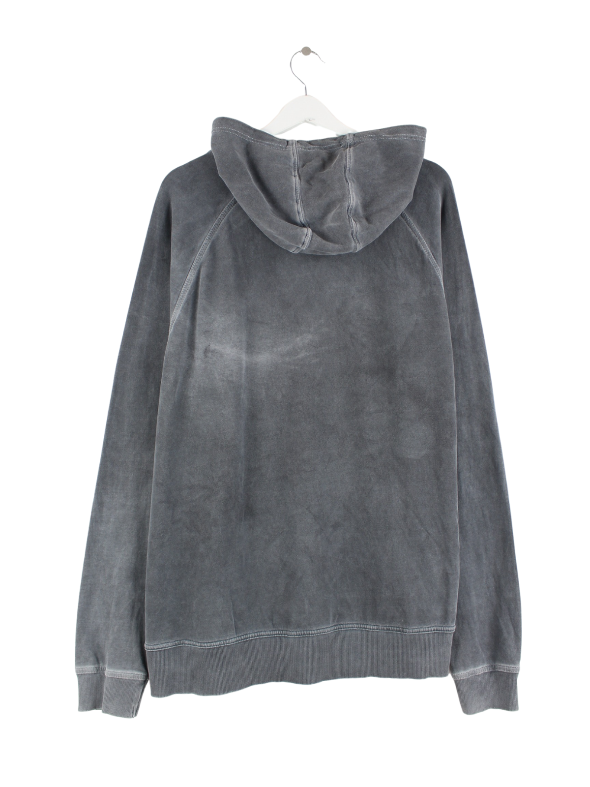 Hoodie von Harley Davidson mit gestickten Motiven in Größe XL. Er ist aus einer Baumwollmischung gefertigt und in Grau zu haben.