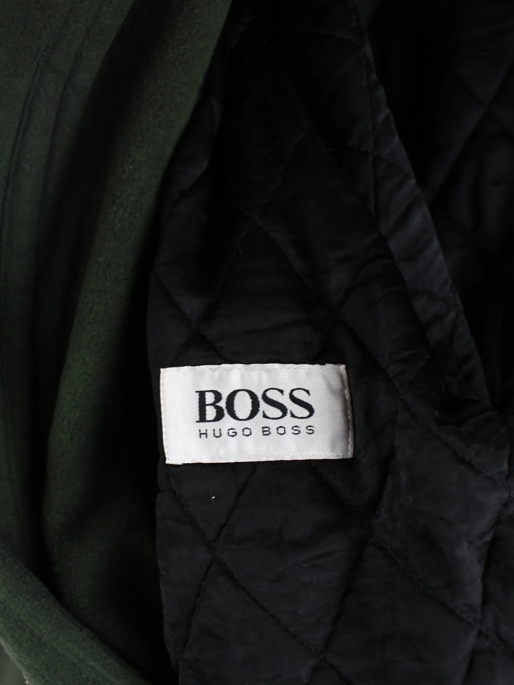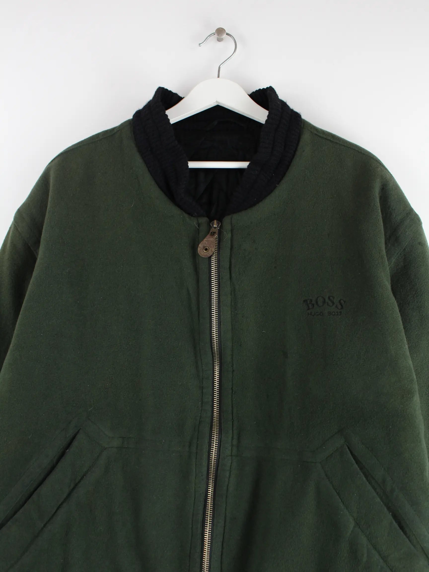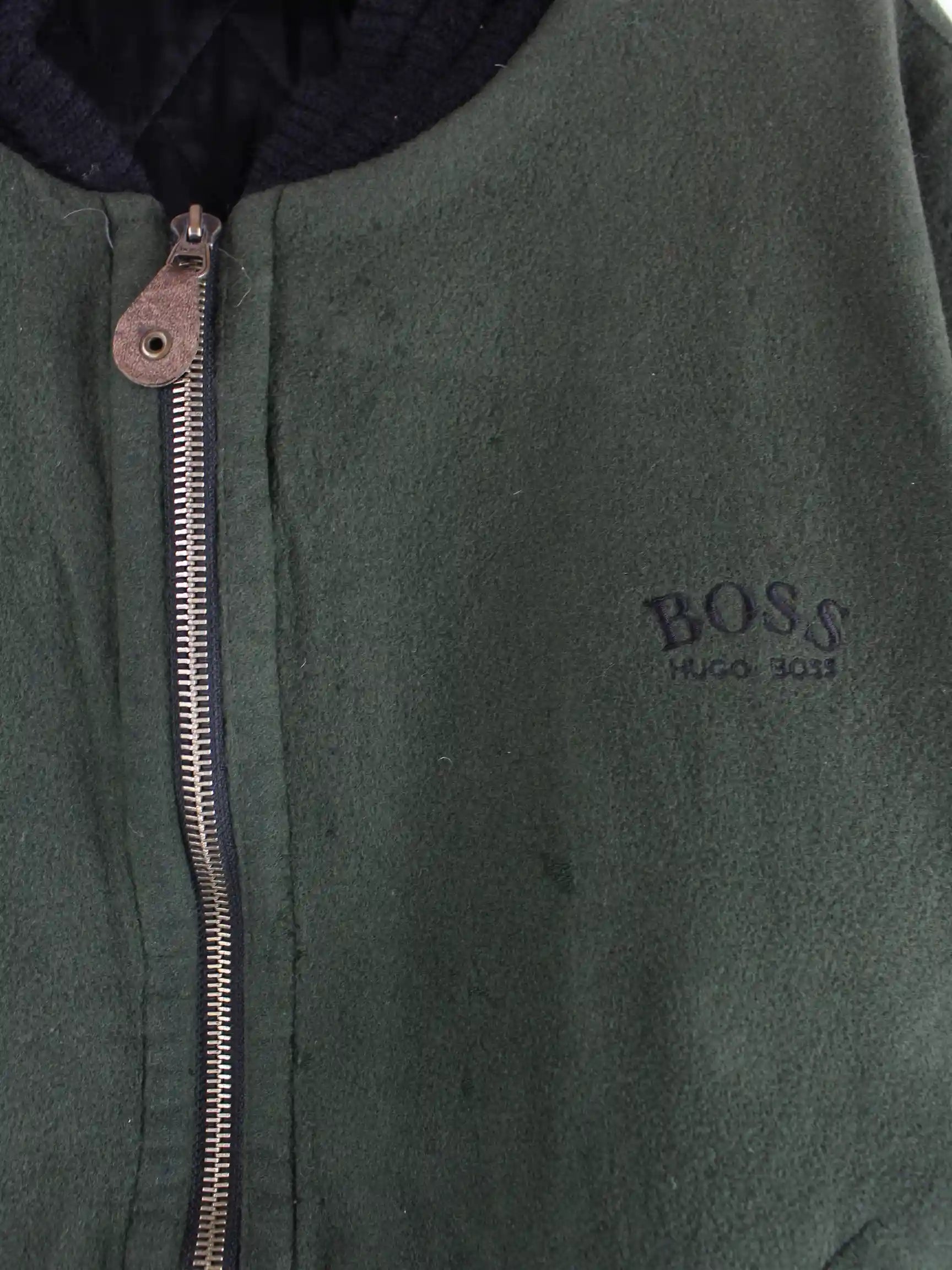 Grüne Jacke des Labels Hugo Boss aus den 90'ern in Größe XL. Sie ist aus einer Wollmischung gefertigt. Den Zustand würden wir als 'In Ordnung' bezeichnen (vergl. Bilder).