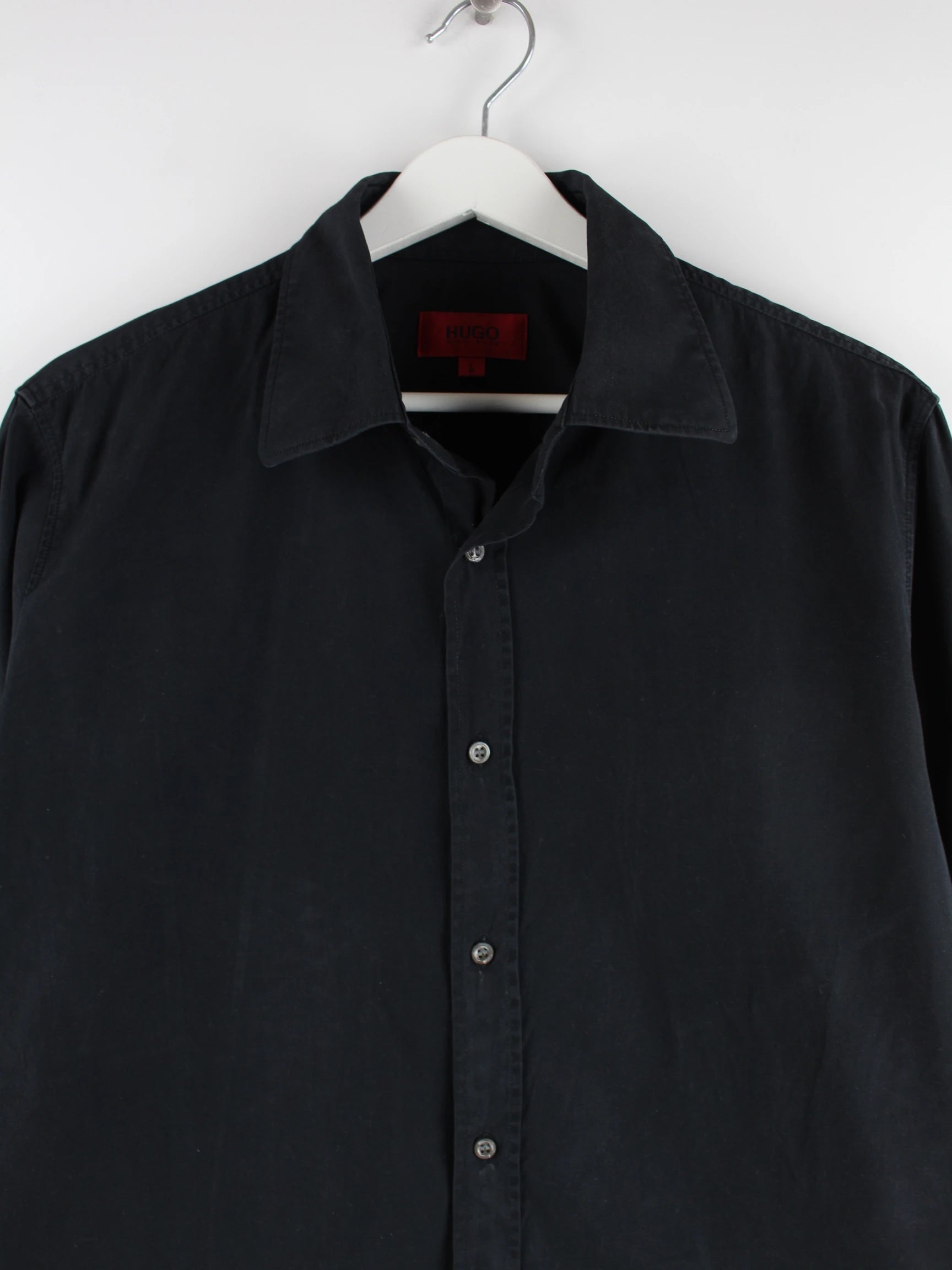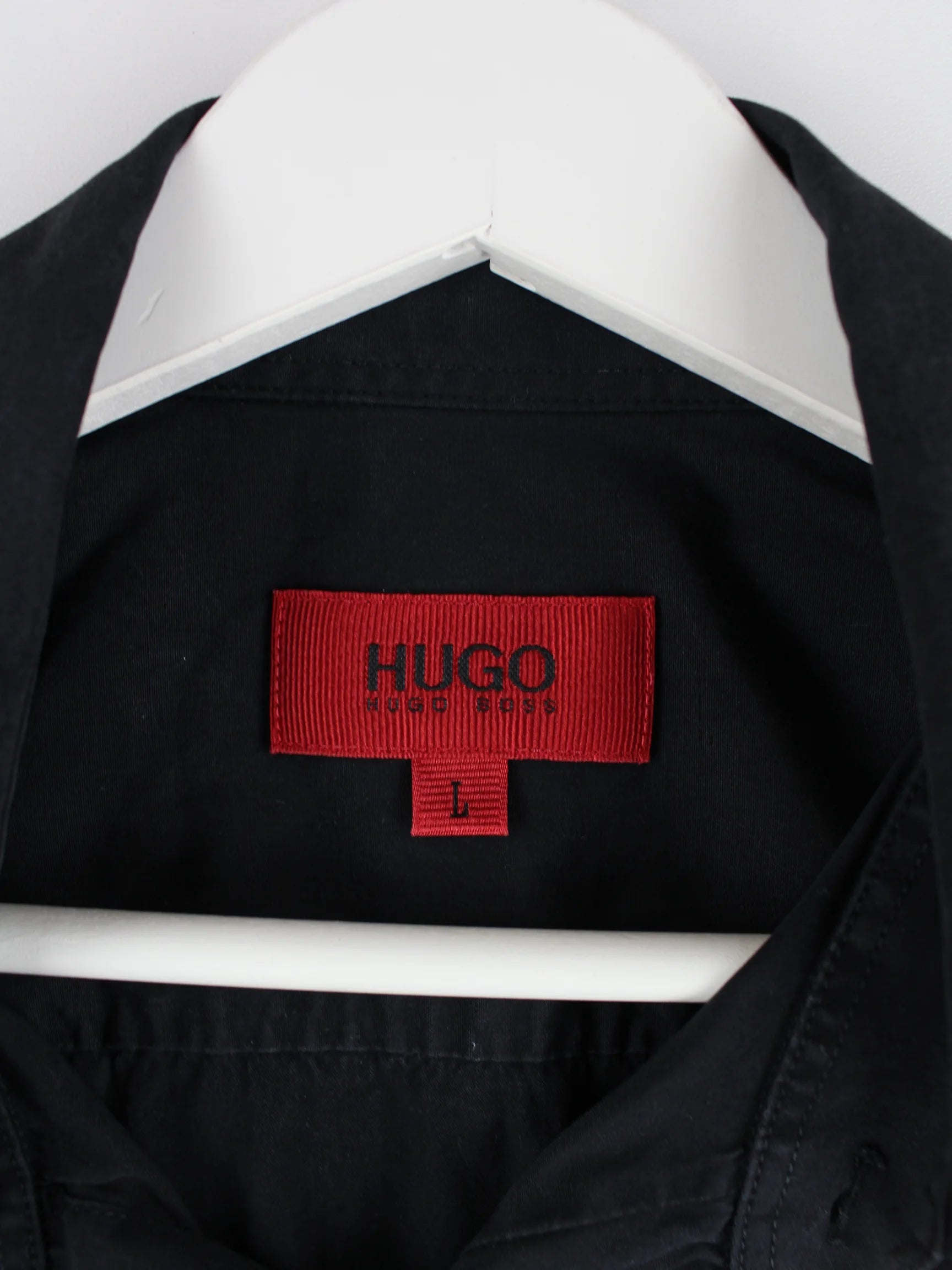 Hemd vom Label Hugo Boss in Größe L. Es ist aus Baumwolle angefertigt und in Schwarz zu haben.