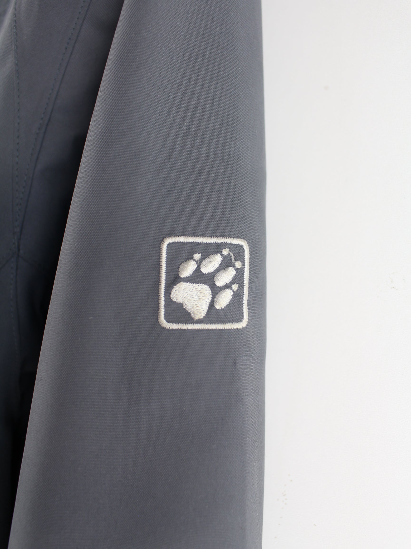 Graue Jacke aus dem Hause Jack Wolfskin in Größe L. Sie ist aus Synthetik produziert. Den Zustand würden wir als 'In Ordnung' bezeichnen (vergl. Bilder).