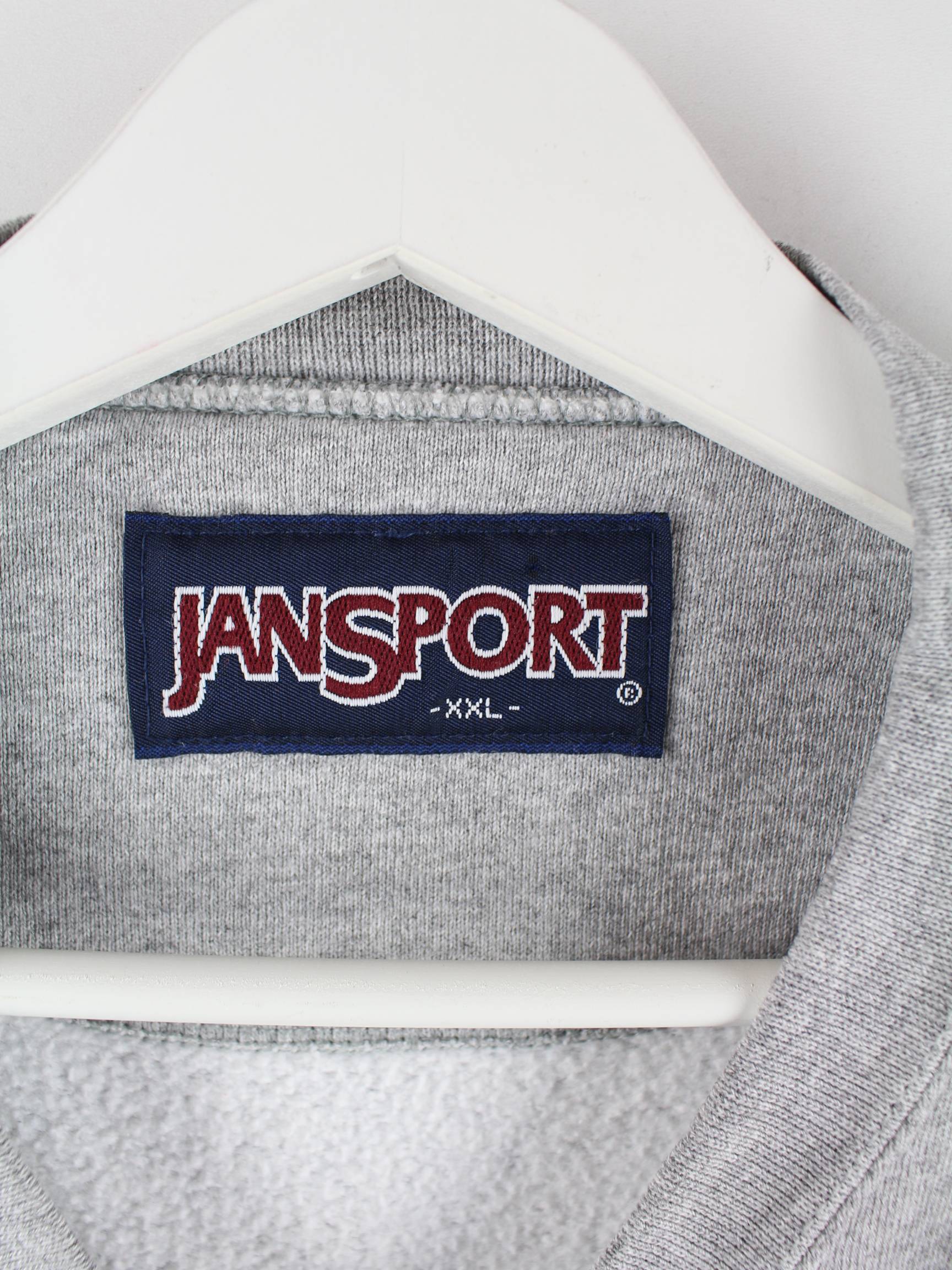 Grauer Sweater mit Stick vom Brand Jansport aus den 90'ern in Größe XXL. Er ist aus einer Baumwollmischung produziert und in sehr gutem Zustand bei uns zu bekommen.