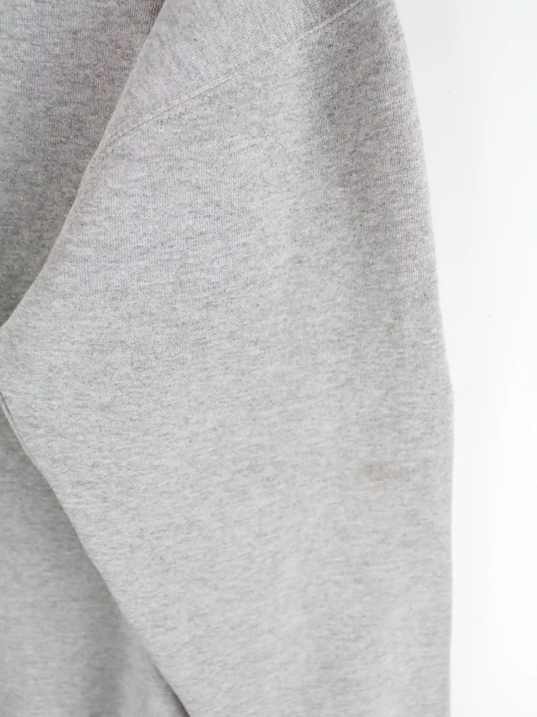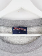 Grauer Sweater vom Label Jansport aus den 90'ern in Größe L. Er ist aus einer Baumwollmischung angefertigt und in gutem Zustand bei uns zu bekommen.