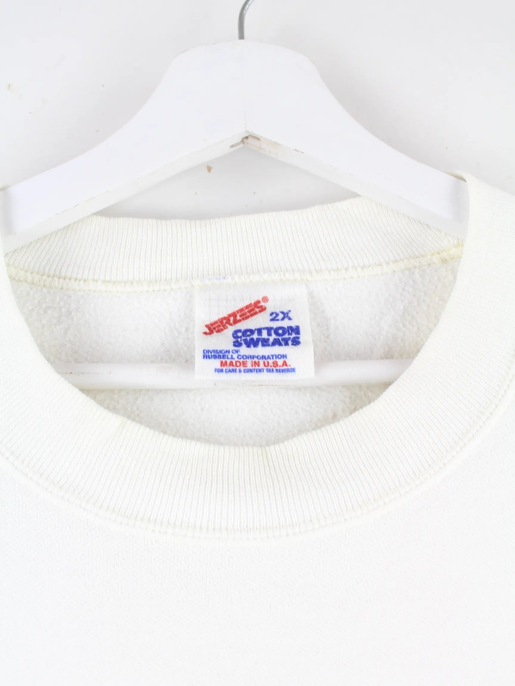 Sweater der Marke Jerzees in Größe XXL aus den 90'ern. Er ist aus einer Baumwollmischung gemacht und in Weiß im Angebot.