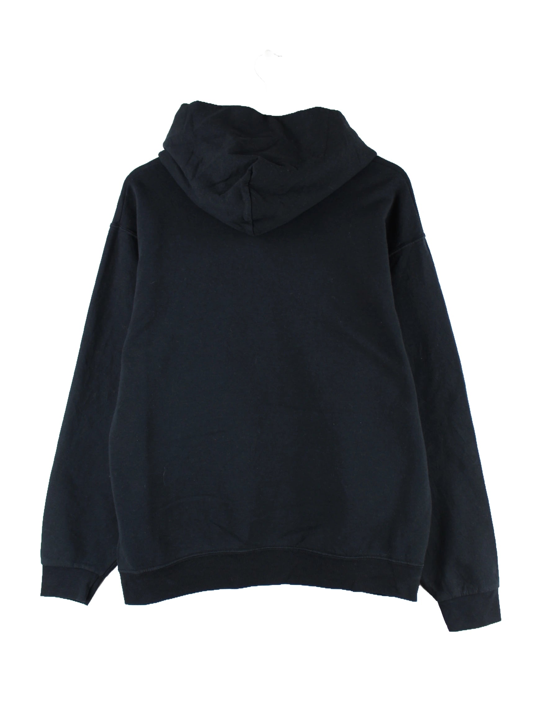 Schwarzer Hoodie vom Label Jerzees in Größe L. Er ist aus einer Baumwollmischung produziert und in sehr gutem Zustand lieferbar. Mit schickem Raiders Print.