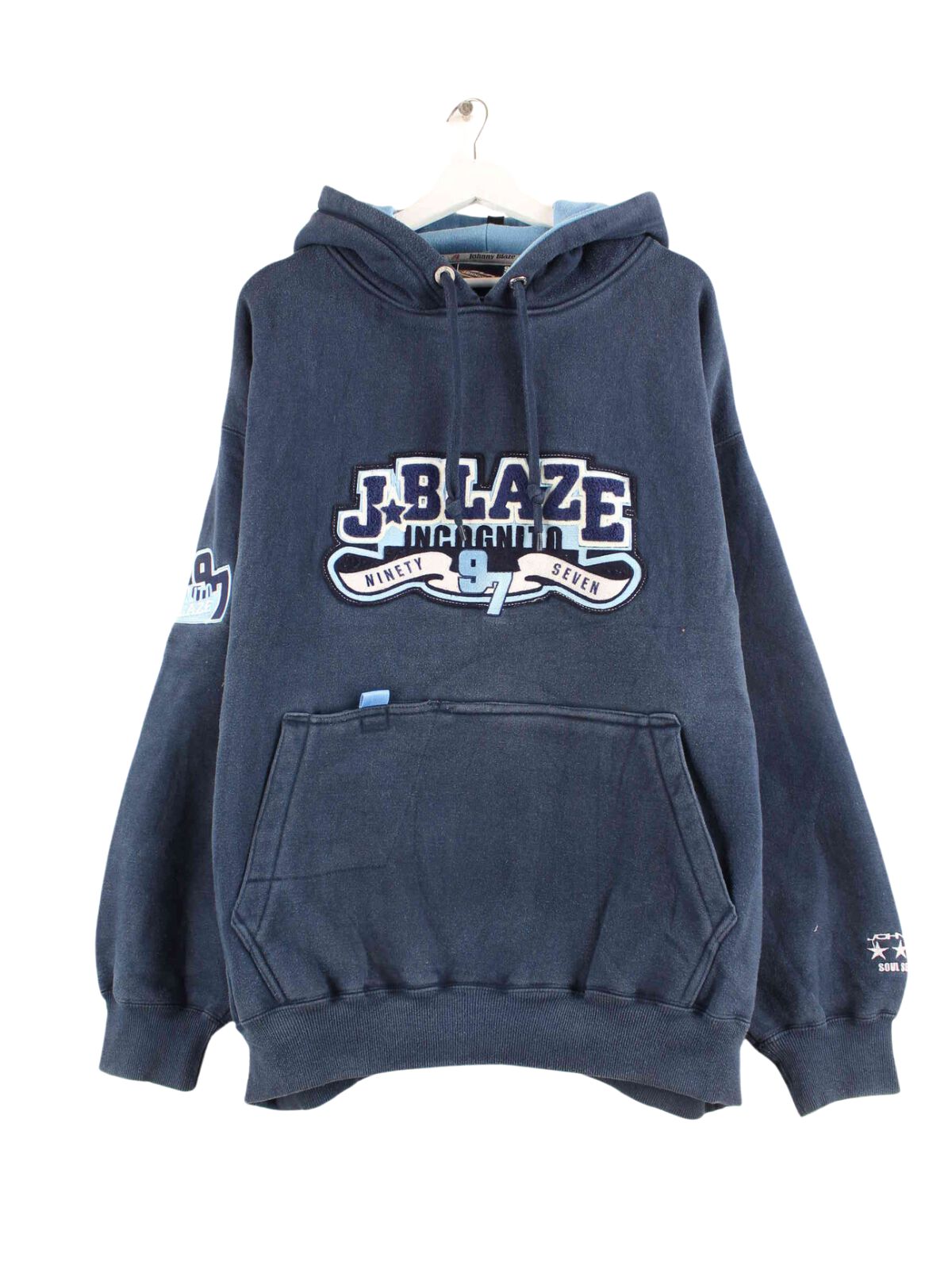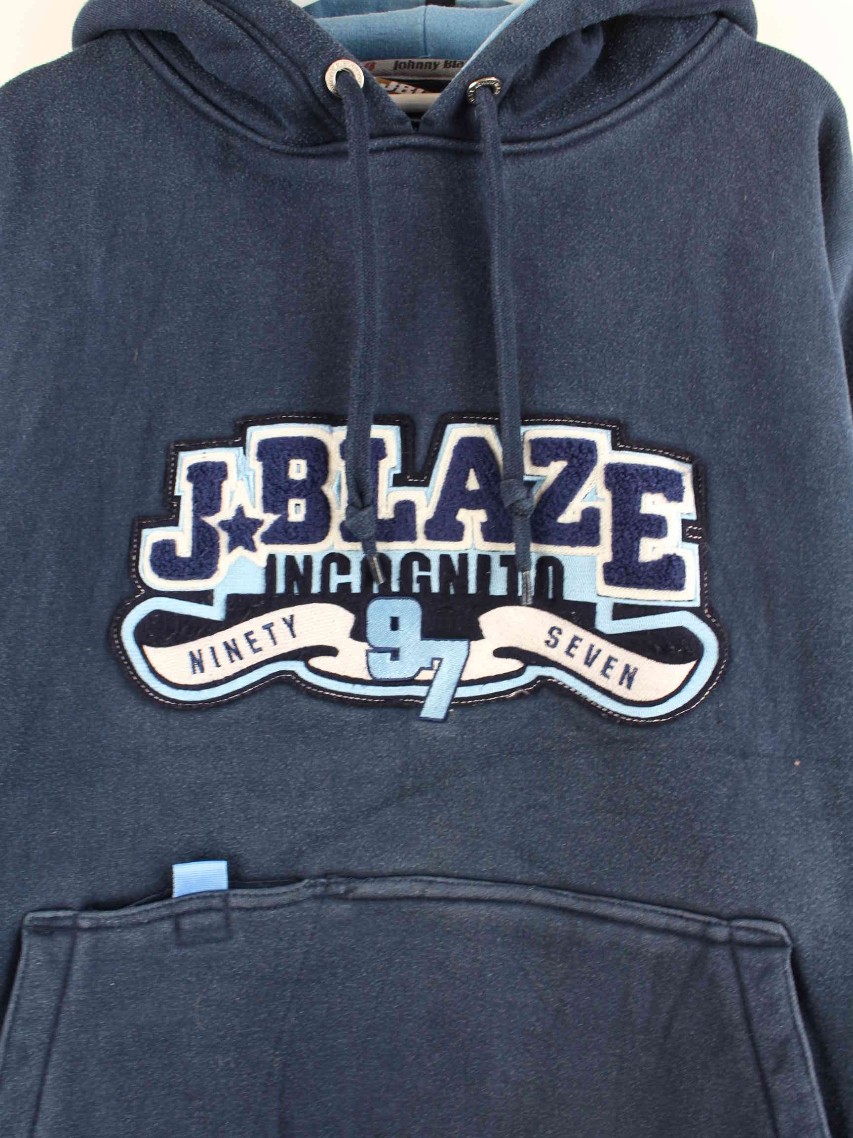 Hoodie from Johnny Blaze with embroidered logo in size XL from the early 2000s. It is made from a cotton blend and is available in blue.