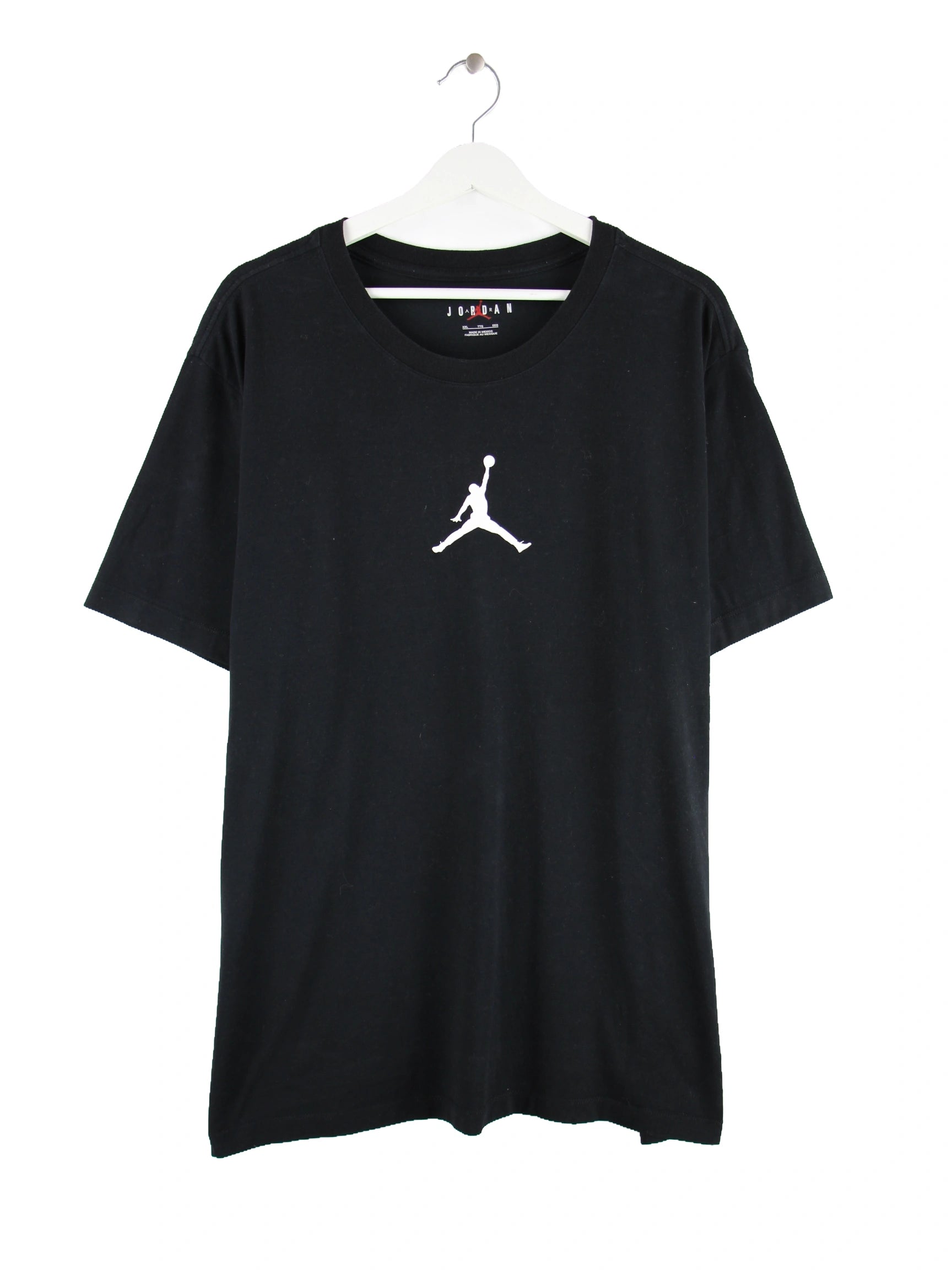 Schwarzes T-Shirt vom Label Jordan in Größe XXL. Es ist aus Baumwolle produziert und in sehr gutem Zustand im Bestand. Mit schönem Logo Print.