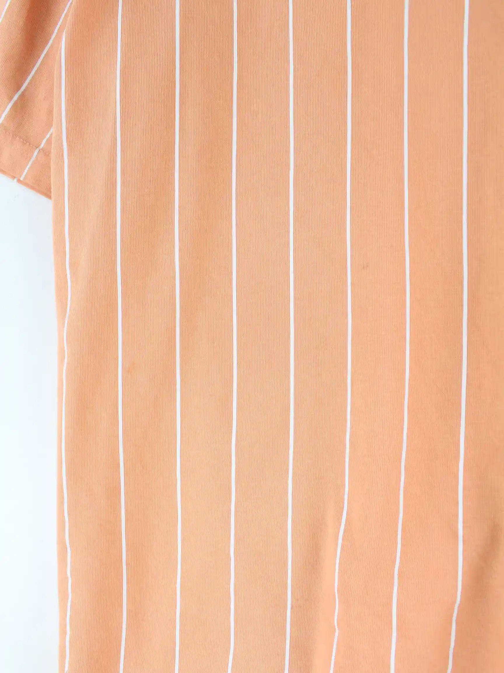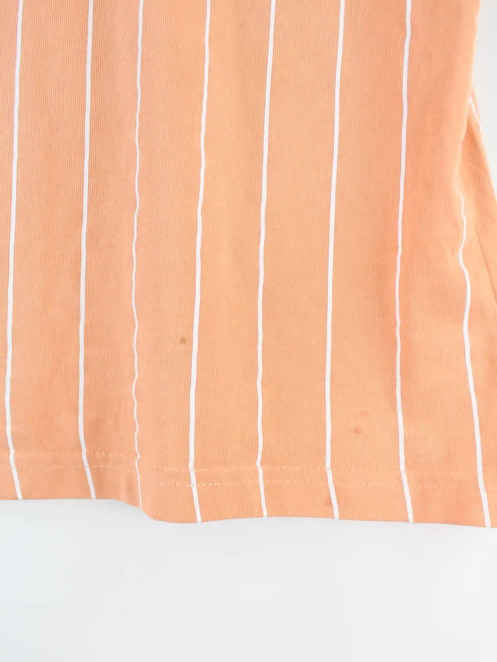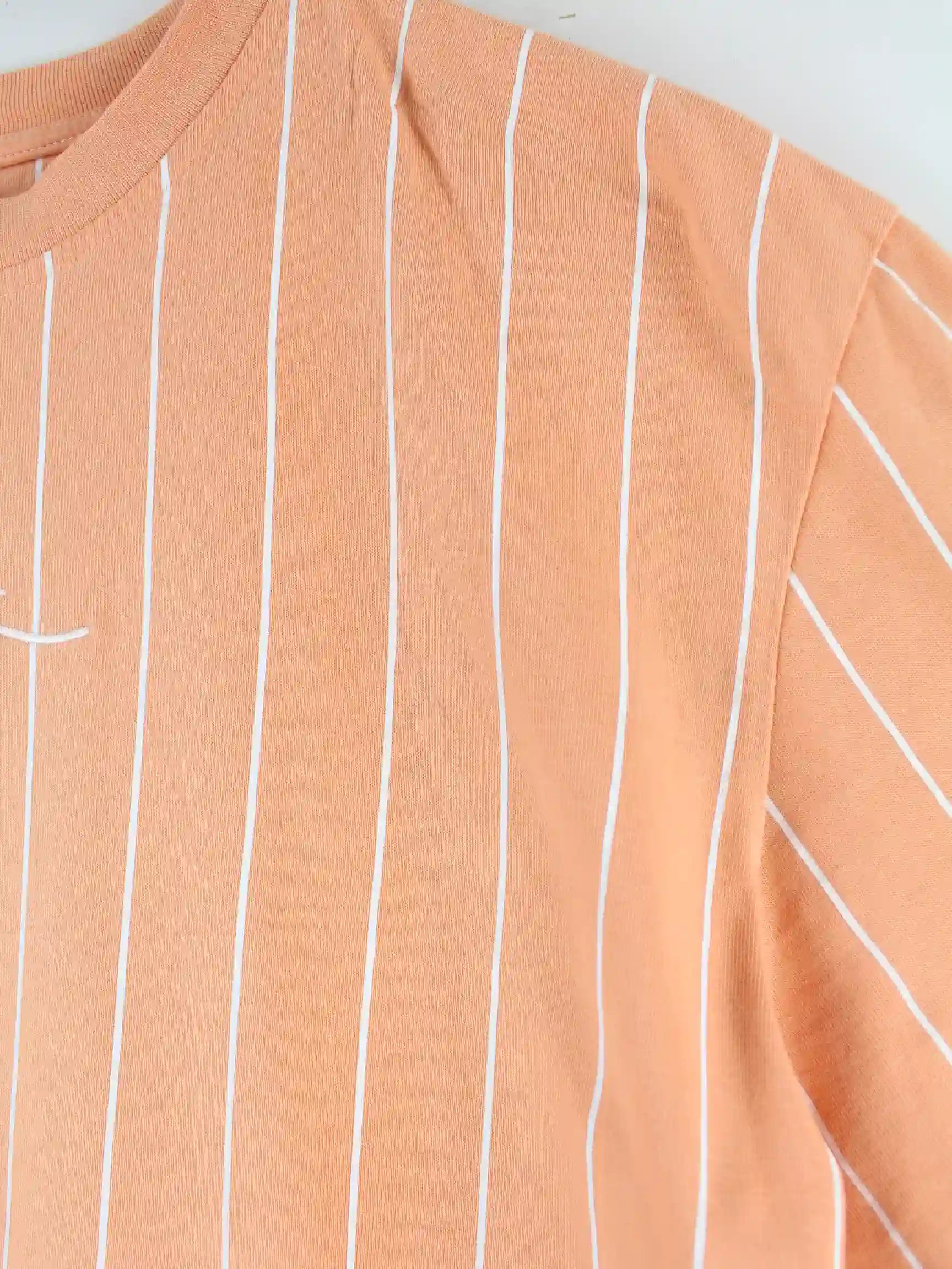 Orangefarbenes T-Shirt mit Stickereien aus dem Hause Karl Kani in Größe S. Es ist aus Baumwolle gemacht. Den Zustand würden wir als 'In Ordnung' bezeichnen (vergl. Bilder).