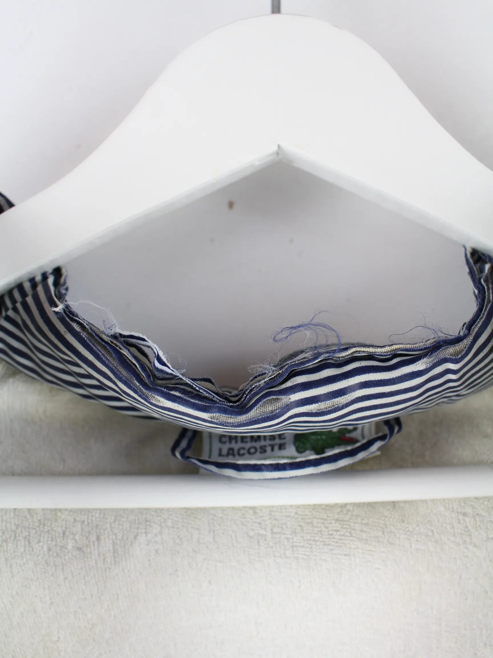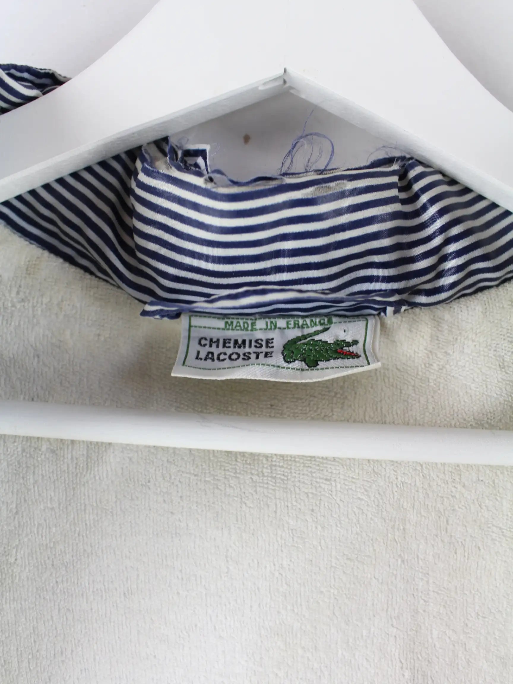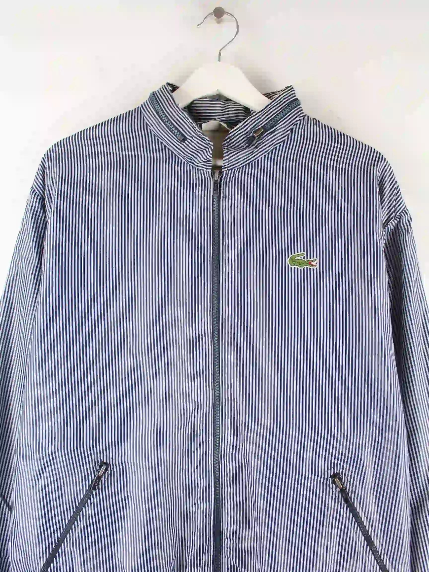 Blaue Leichte Jacke aus dem Hause Lacoste aus den 90'ern in Größe L. Sie ist aus Synthetik und in gutem Zustand bei uns zu bekommen.