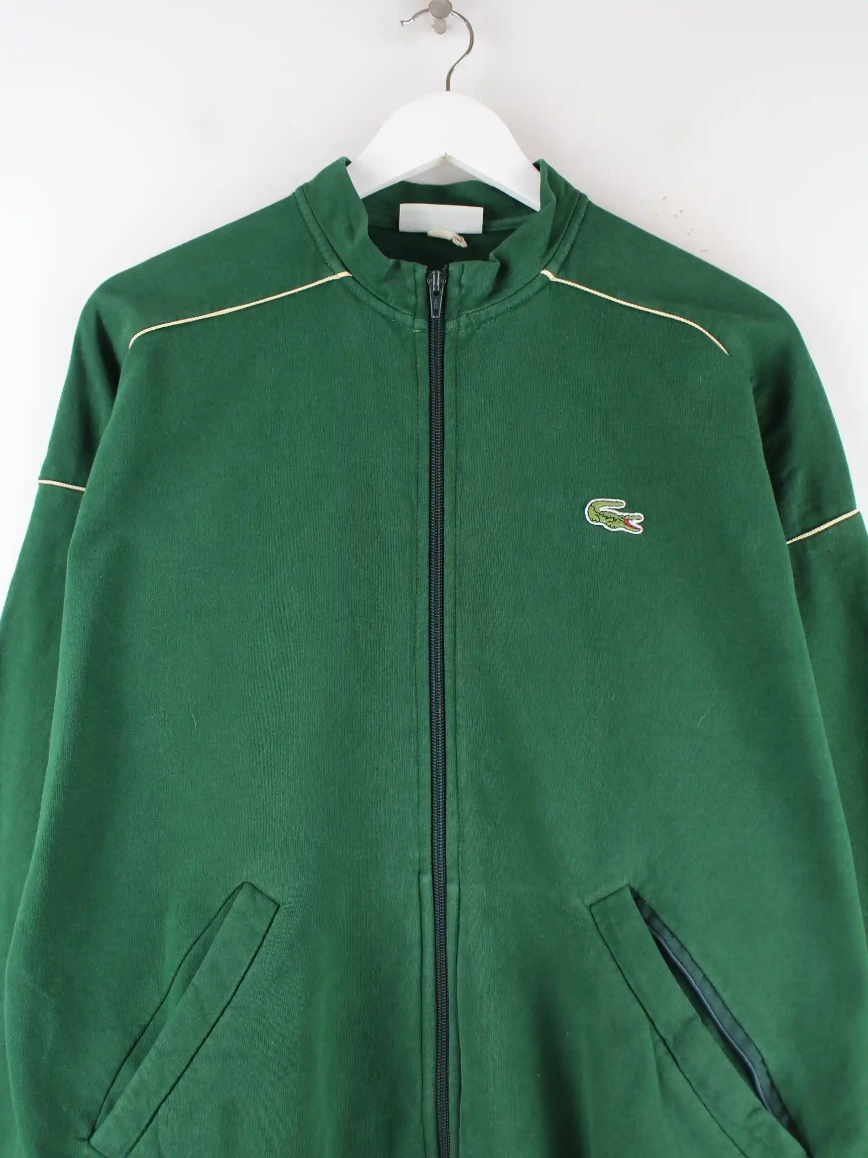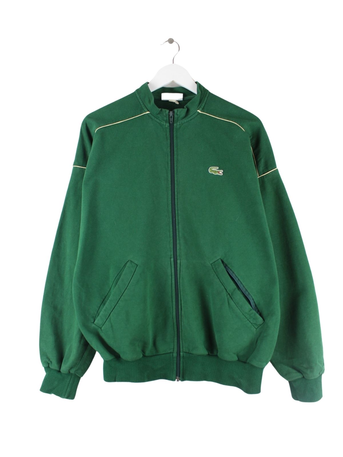 Sweatjacke der Brand Lacoste in Größe L aus den 90'ern. Sie ist aus einer Baumwollmischung produziert und in Grün bei uns vorrätig.