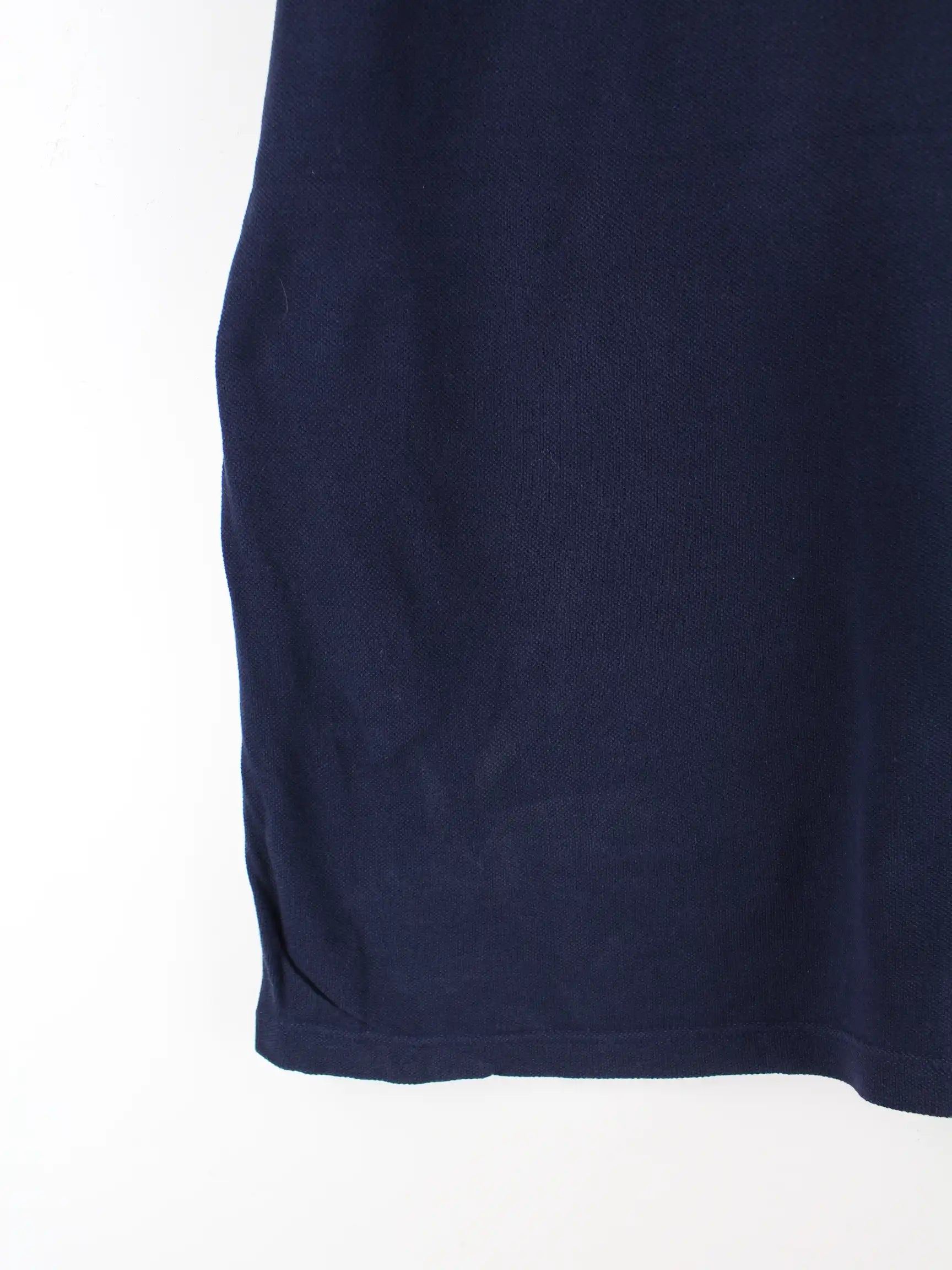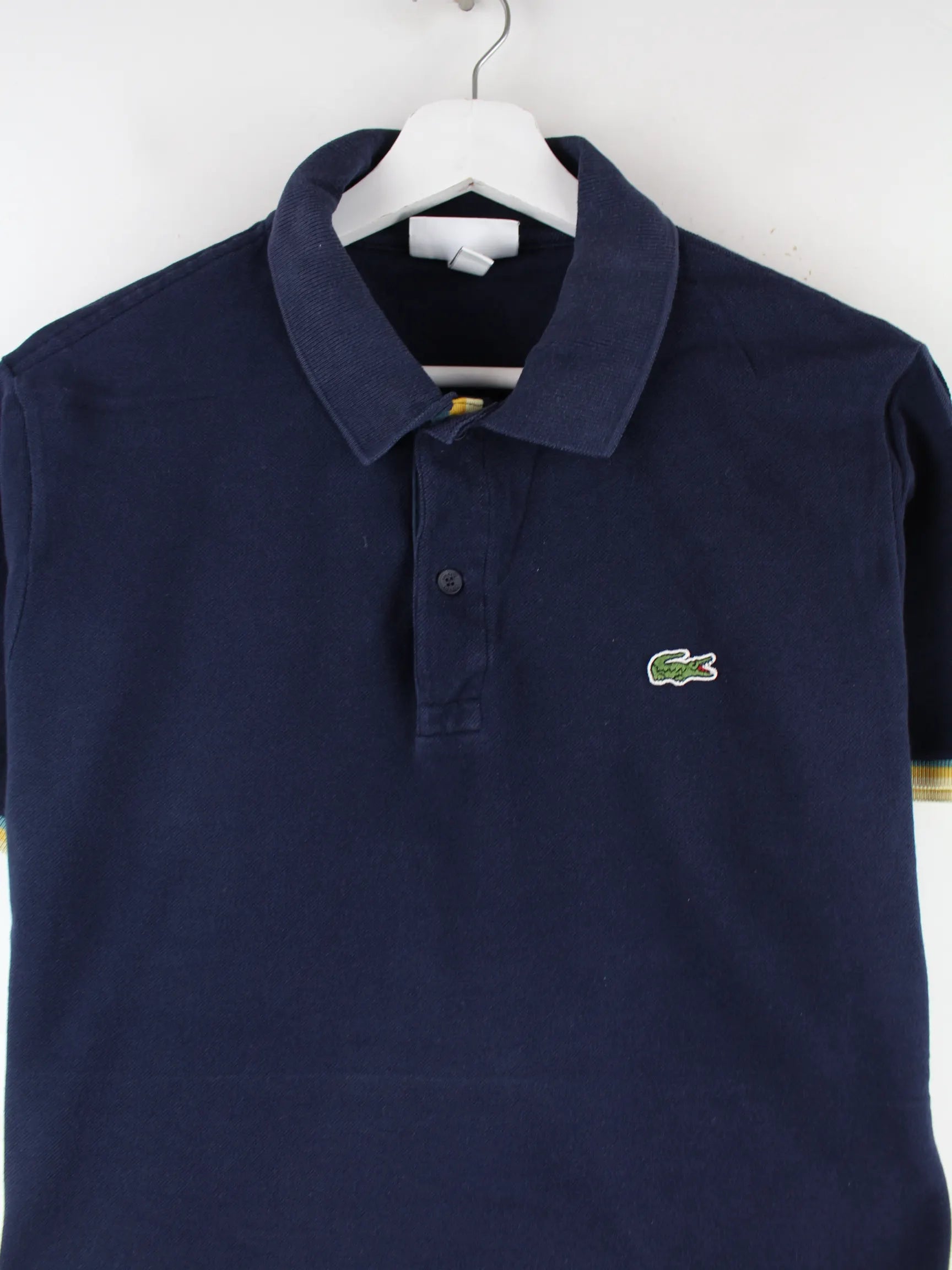 Blaues Poloshirt vom Label Lacoste in Größe L. Es ist aus Baumwolle angefertigt und in gutem Zustand im Bestand.