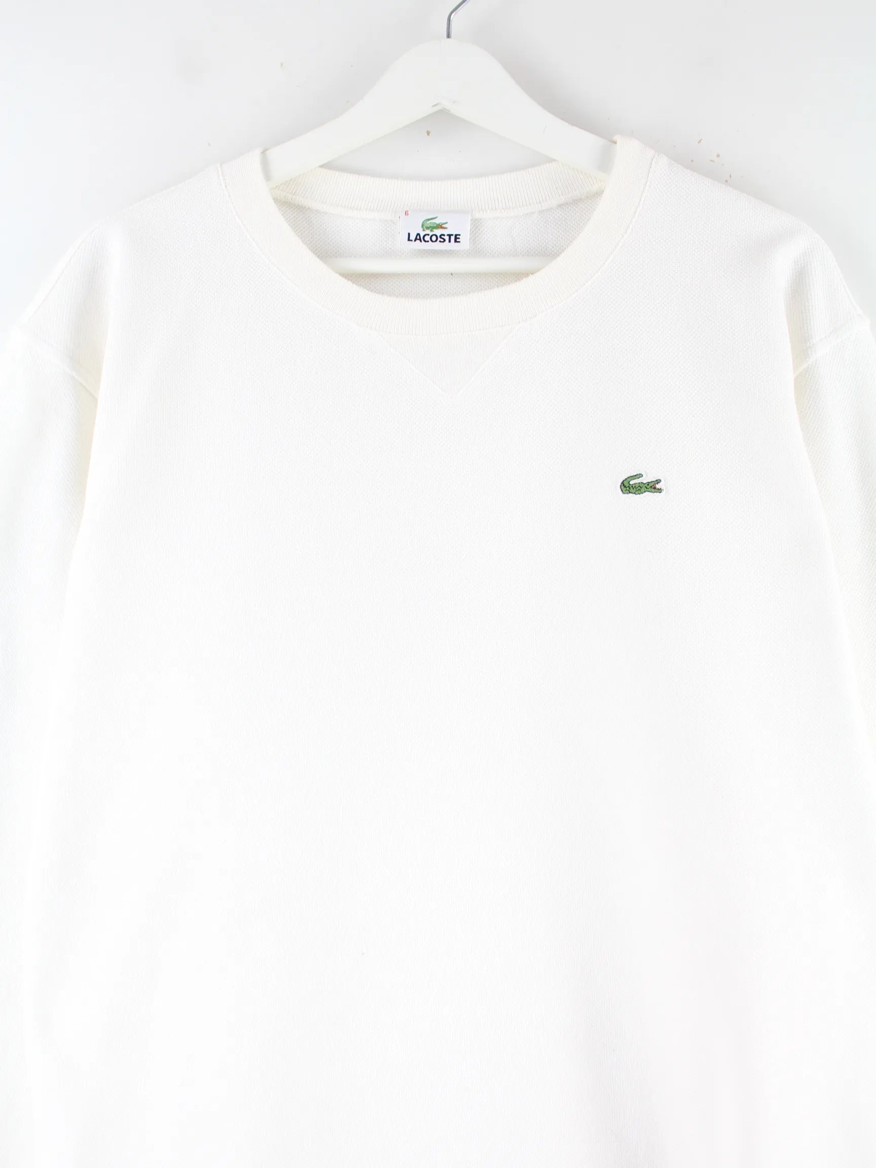 Sweater vom Label Lacoste in Größe L. Er ist aus einer Baumwollmischung produziert und in Weiß im Angebot.