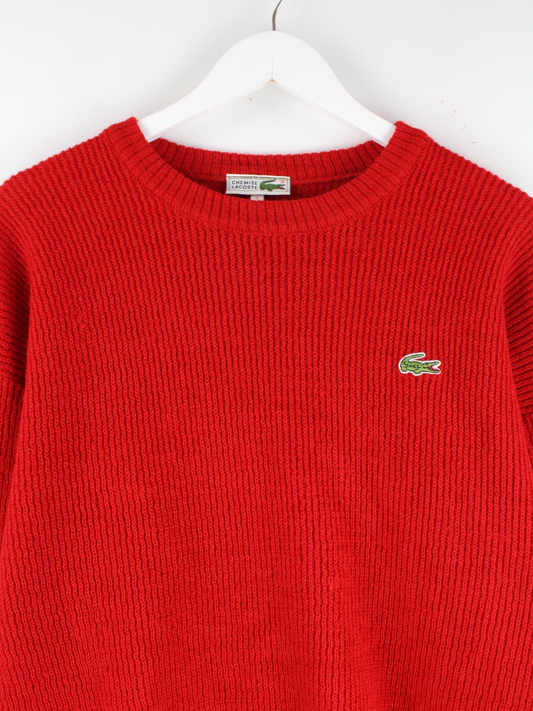 Roter Pullover von Lacoste aus den 90'ern in Größe S. Er ist aus Baumwolle gemacht und in gutem Zustand im Angebot.