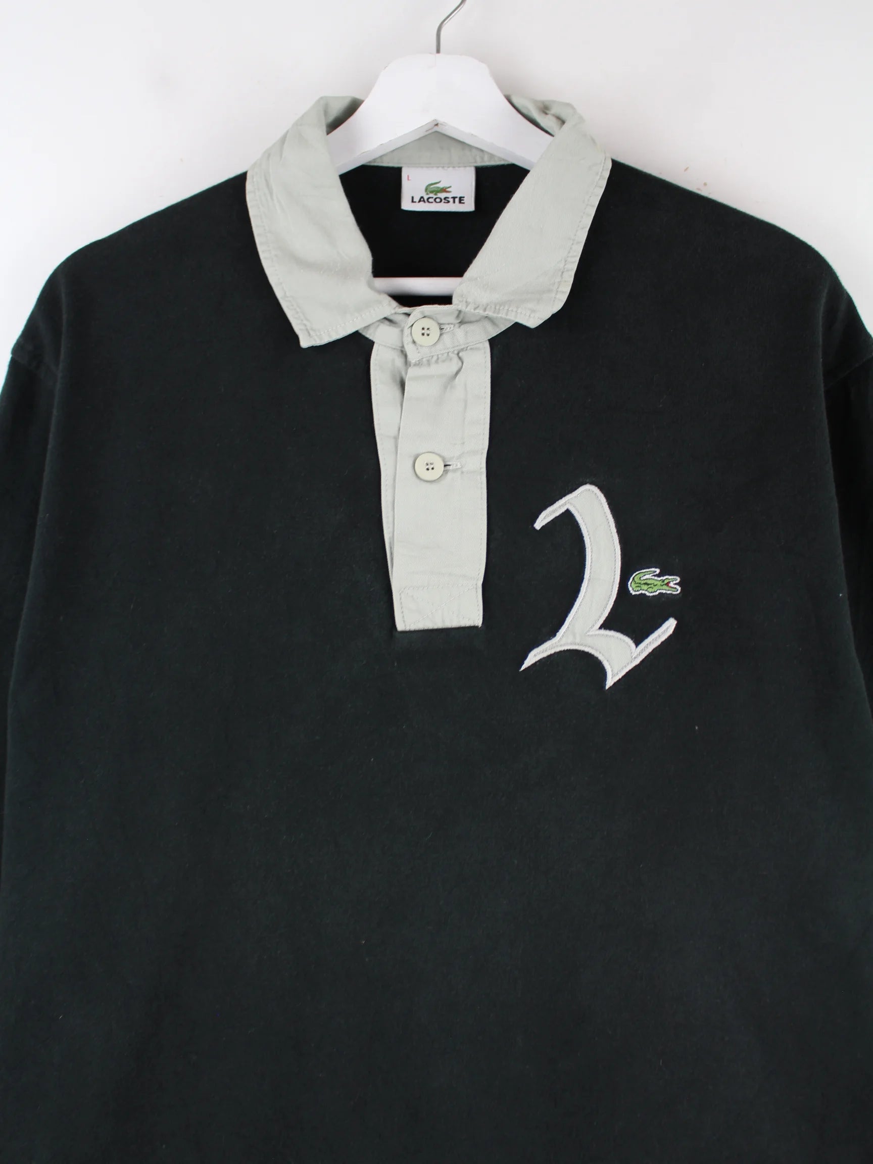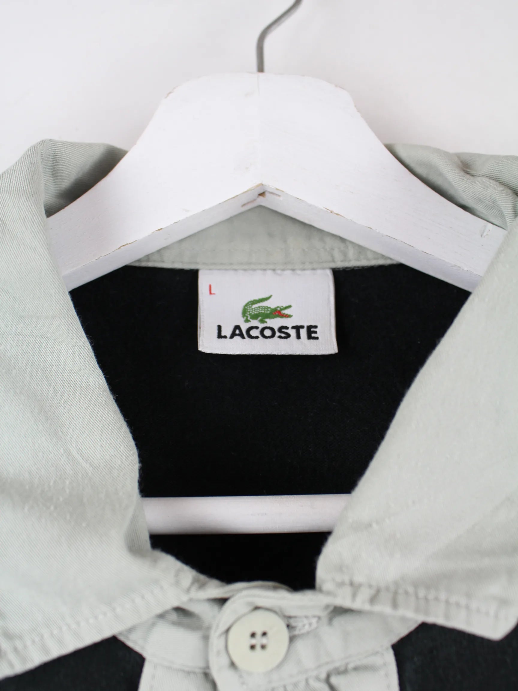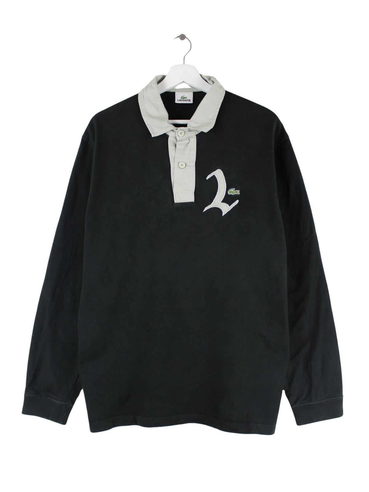 Poloshirt der Brand Lacoste mit Stick in Größe L. Es ist aus Baumwolle und in Schwarz im Bestand.