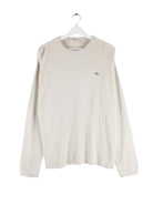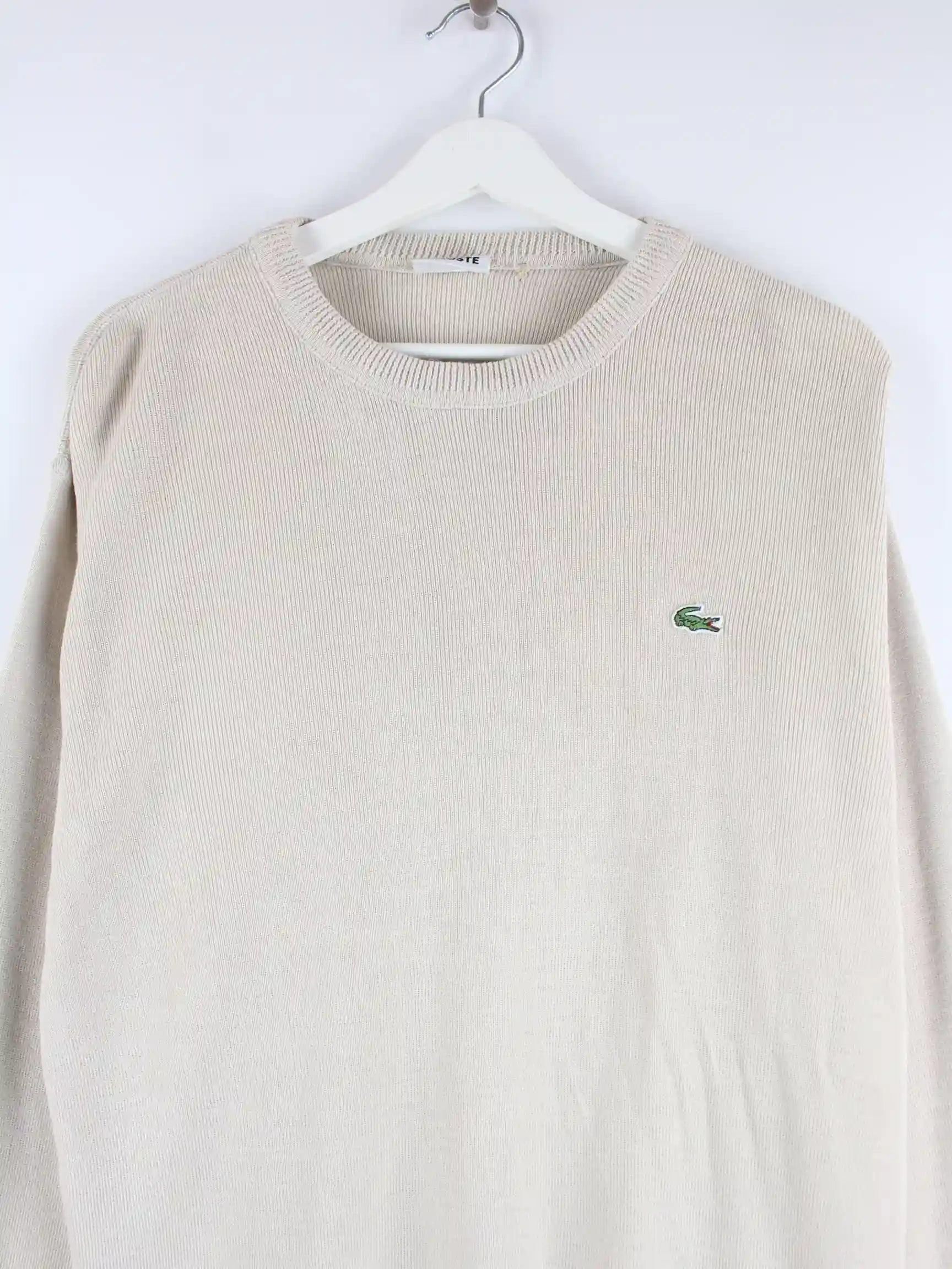 Pullover vom Label Lacoste in Größe XL. Er ist aus einer Wollmischung gemacht und in Beige bei uns vorrätig.