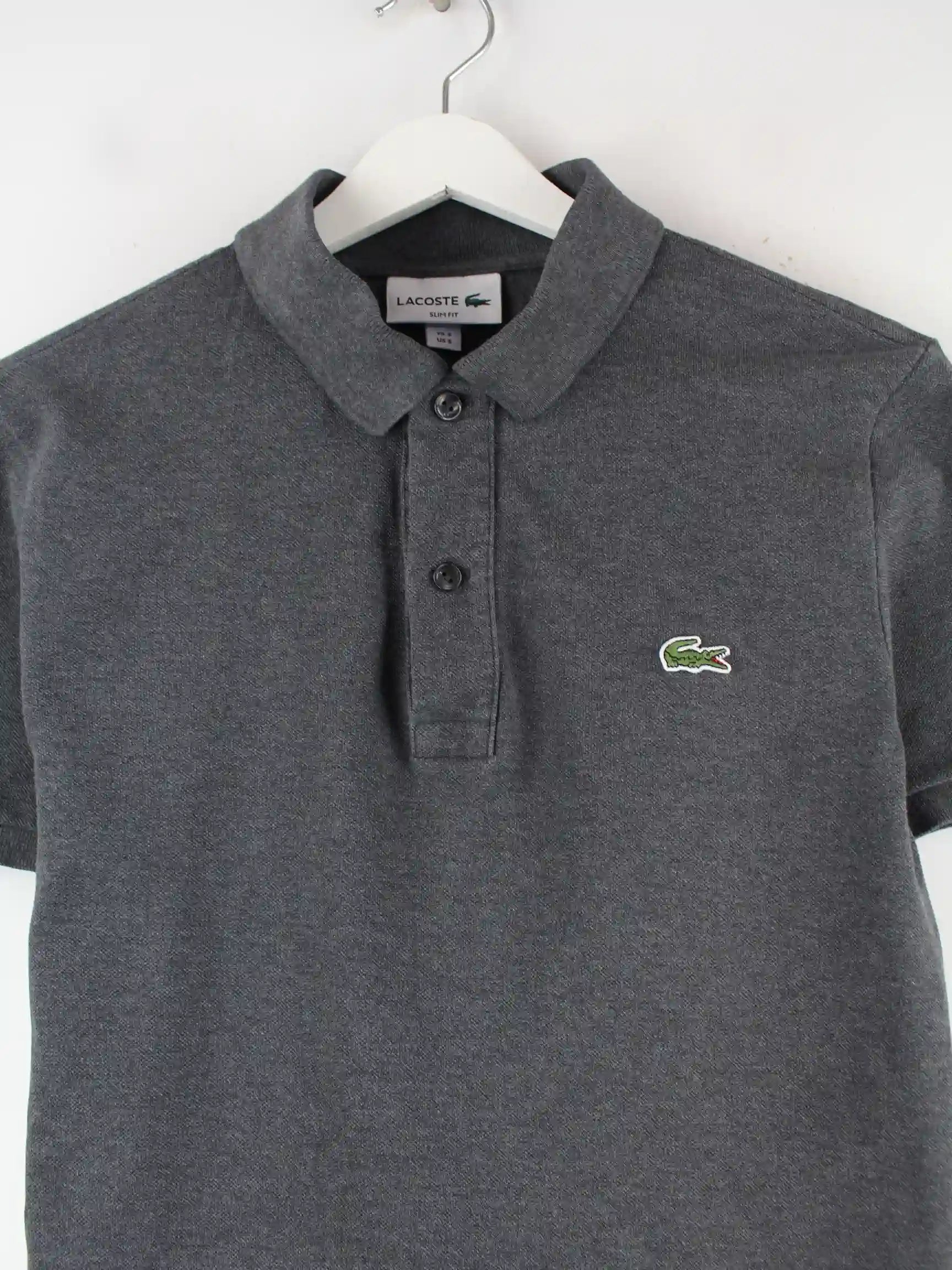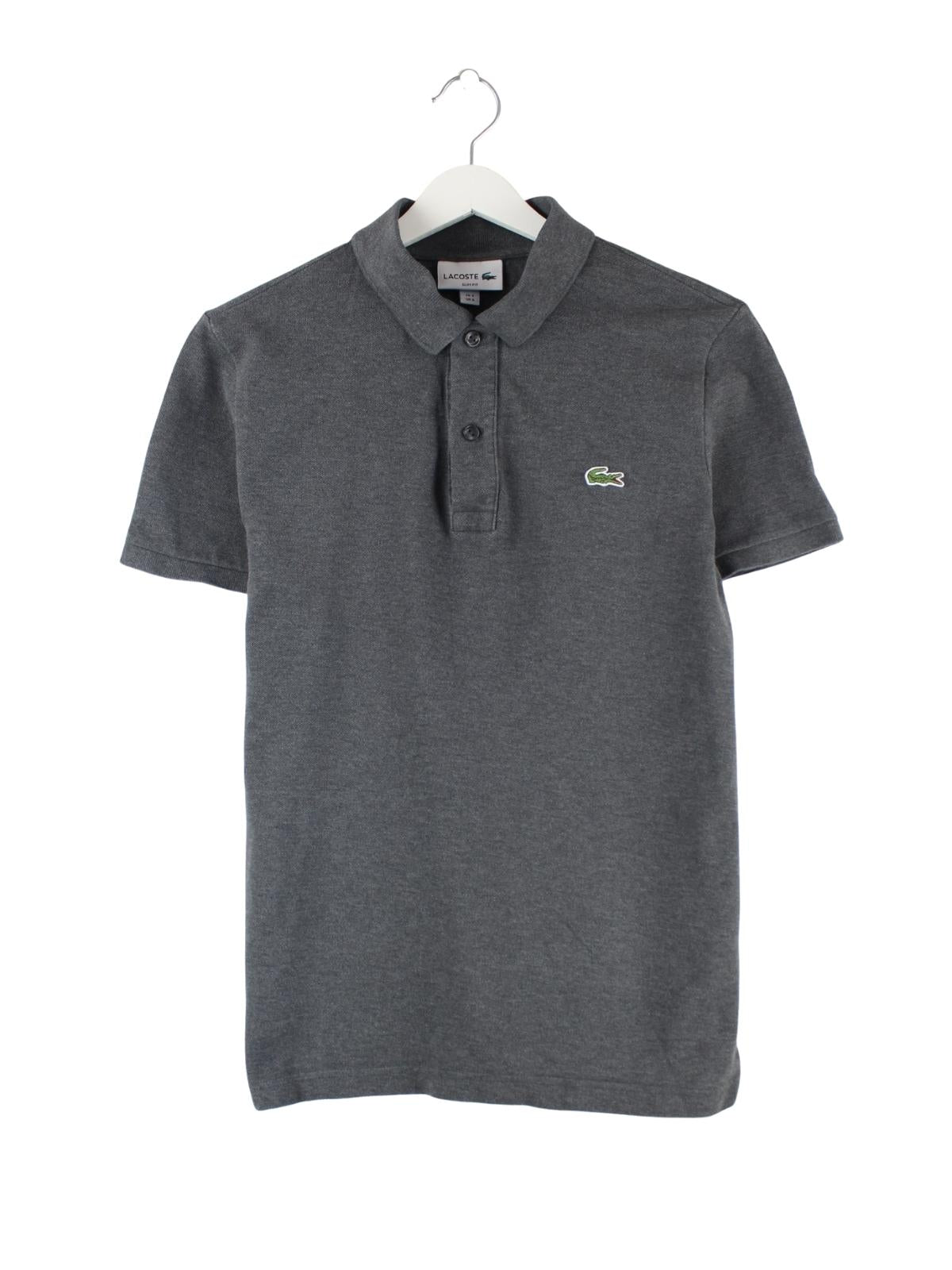 Graues Poloshirt vom Label Lacoste in Größe S. Es ist aus Baumwolle und in sehr gutem Zustand in Stock.