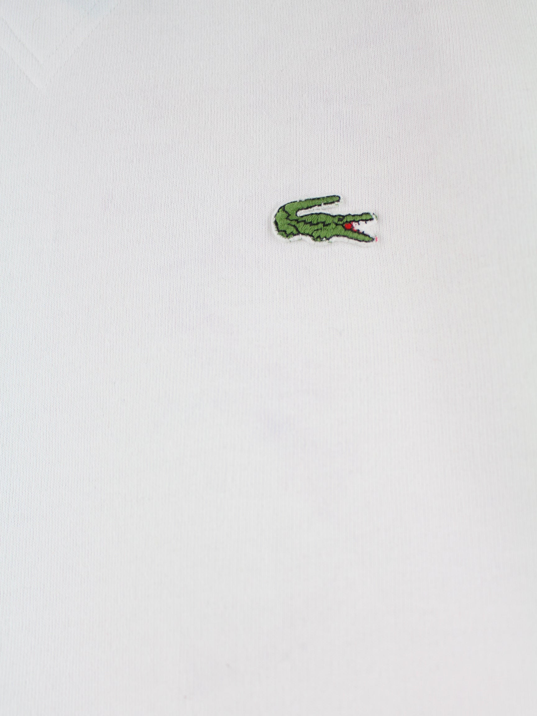 Sweater from the label Lacoste with embroidery in size L. It is made of a cotton blend and is available in white.