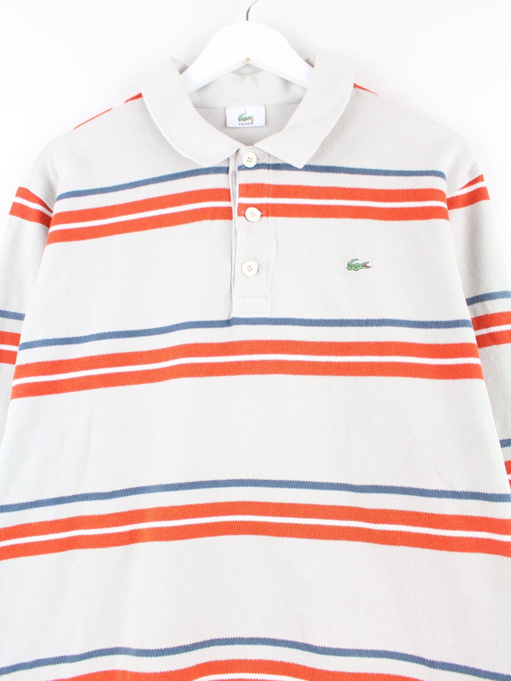 Multi-colored polo shirt from the brand Lacoste in size L. It is made of cotton and is in good condition in stock.