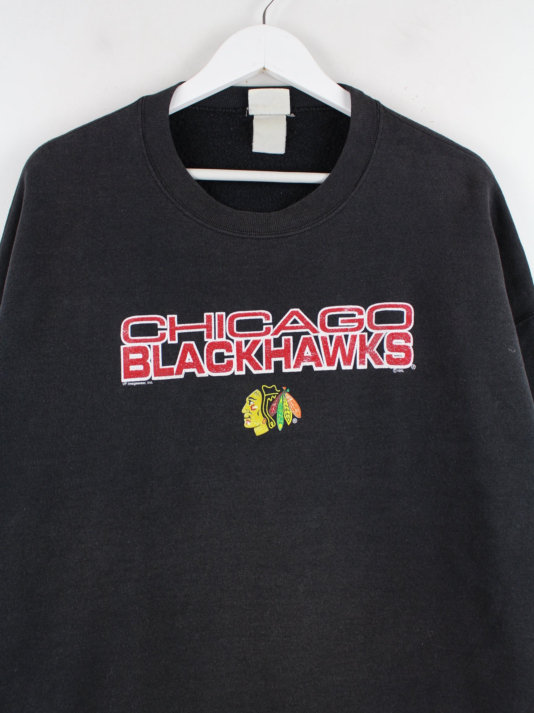 Lee 90s Vintage Chichago Blackhawks Print Sweater Schwarz XL