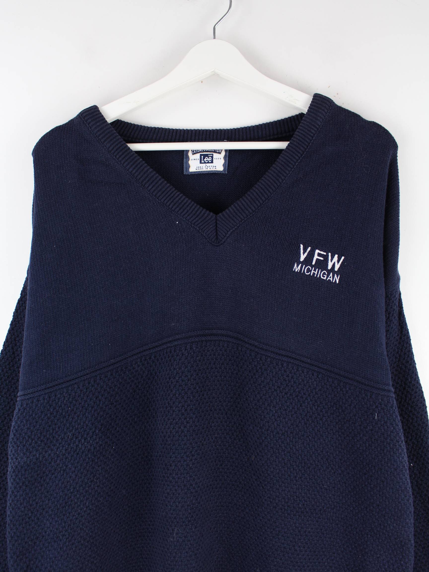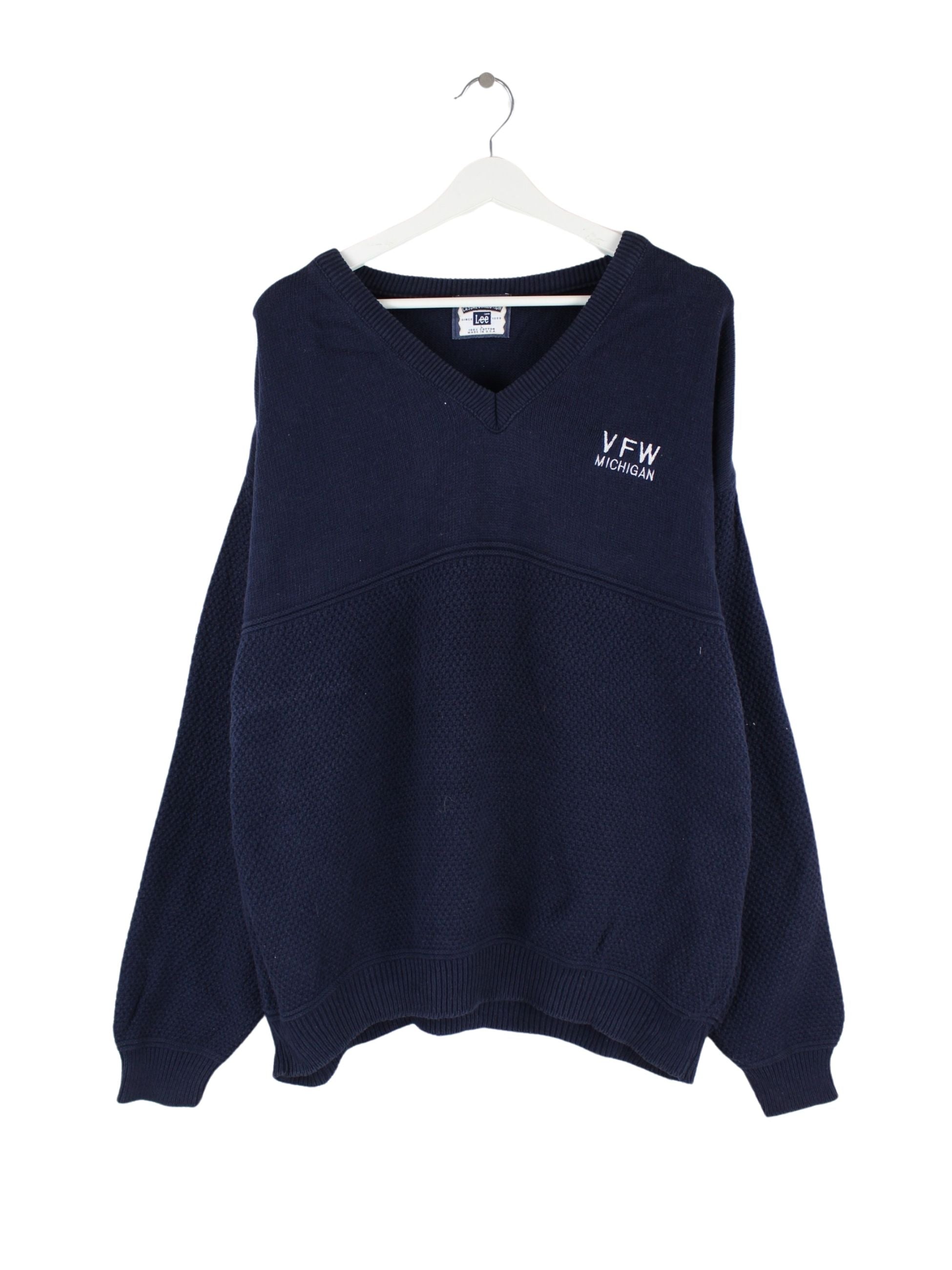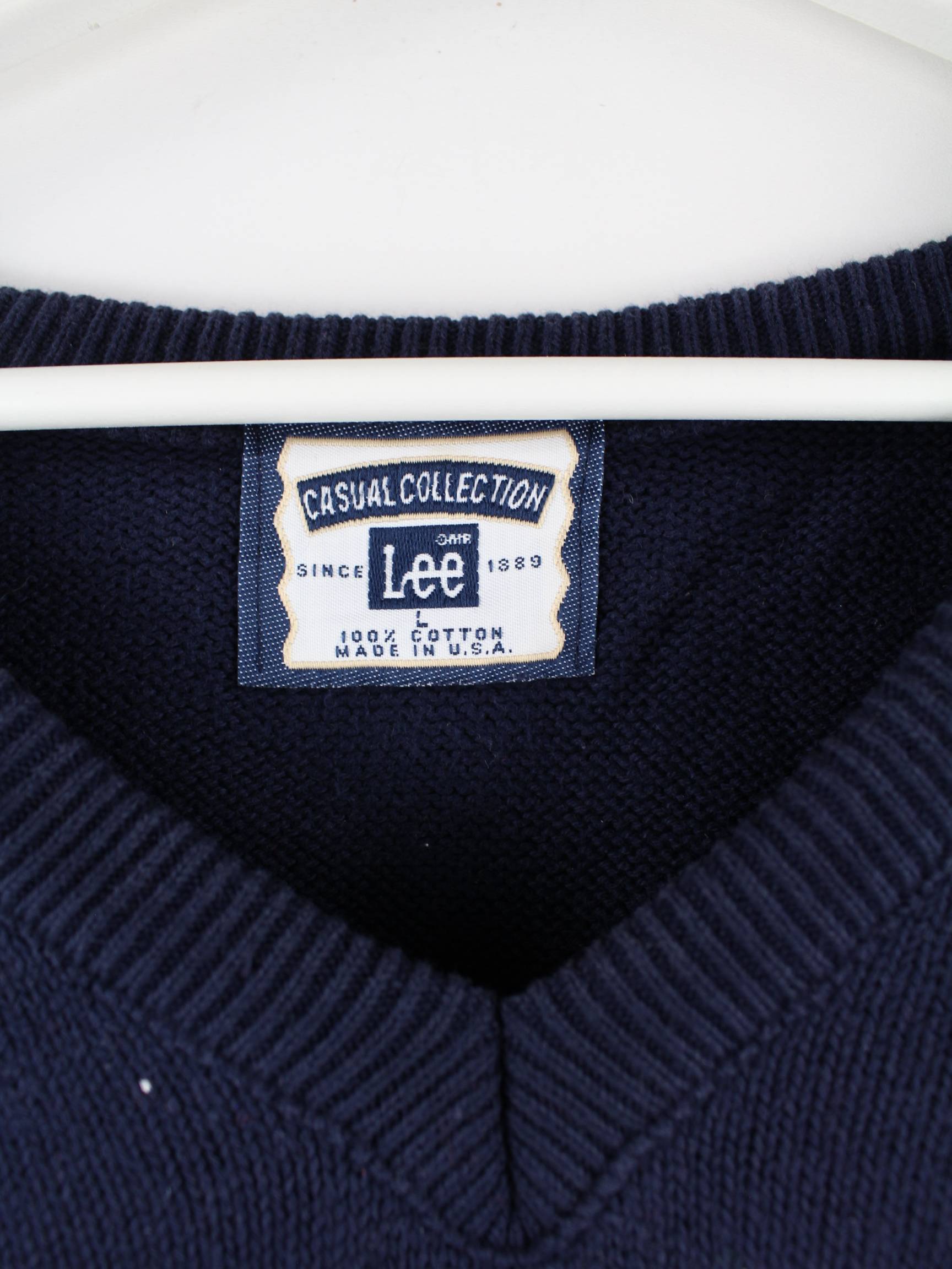 Blauer Pullover mit Stick des Labels Lee aus den 90'ern in Größe L. Er ist aus Baumwolle gemacht und in sehr gutem Zustand auf Lager.