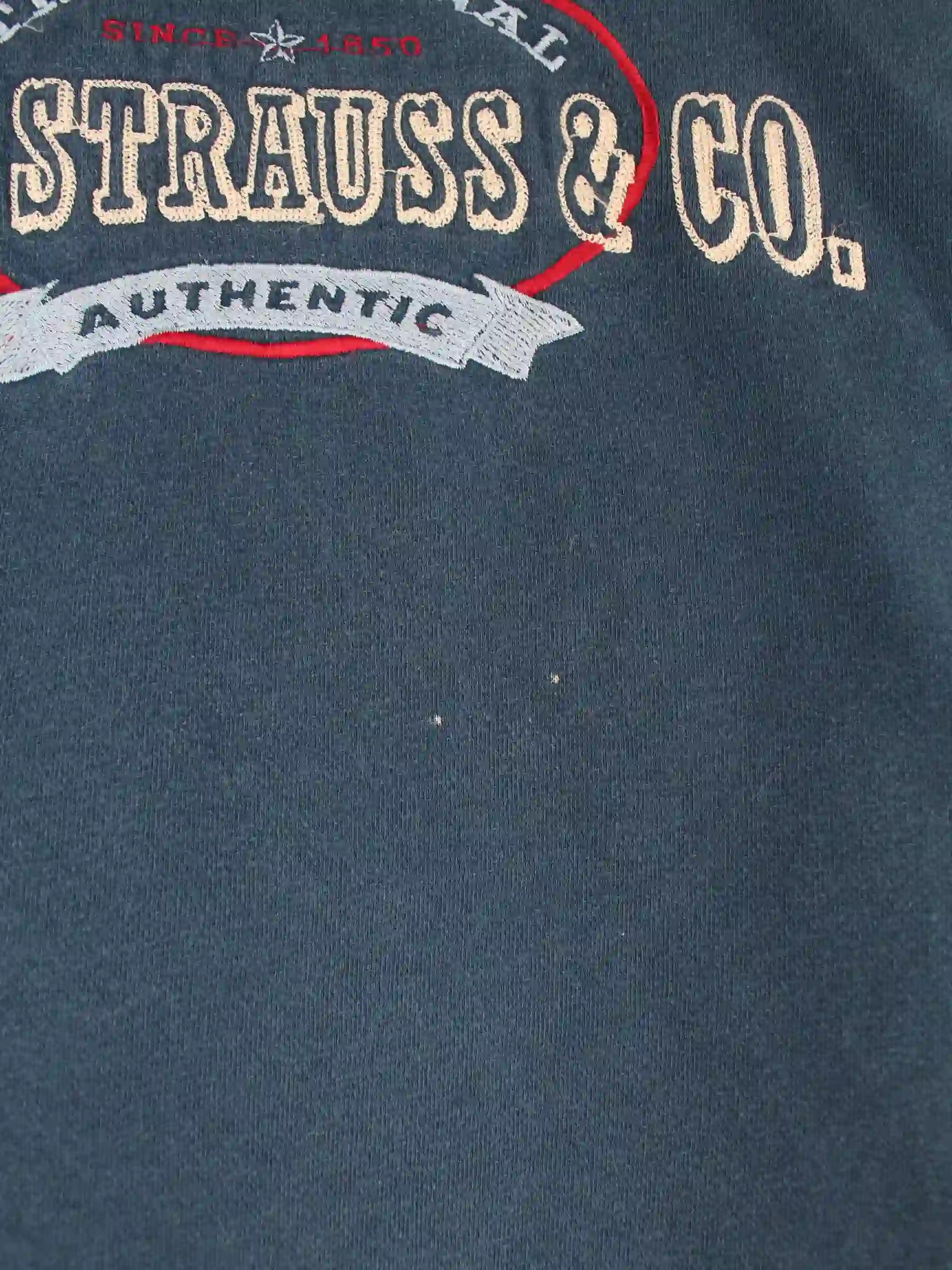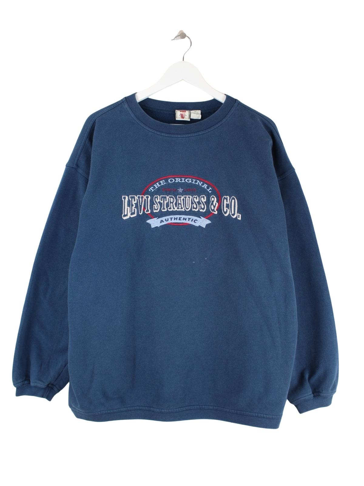 Sweater vom Label Levi's mit Stickereien in Größe M. Er ist aus einer Baumwollmischung produziert und in Blau bei uns vorrätig.