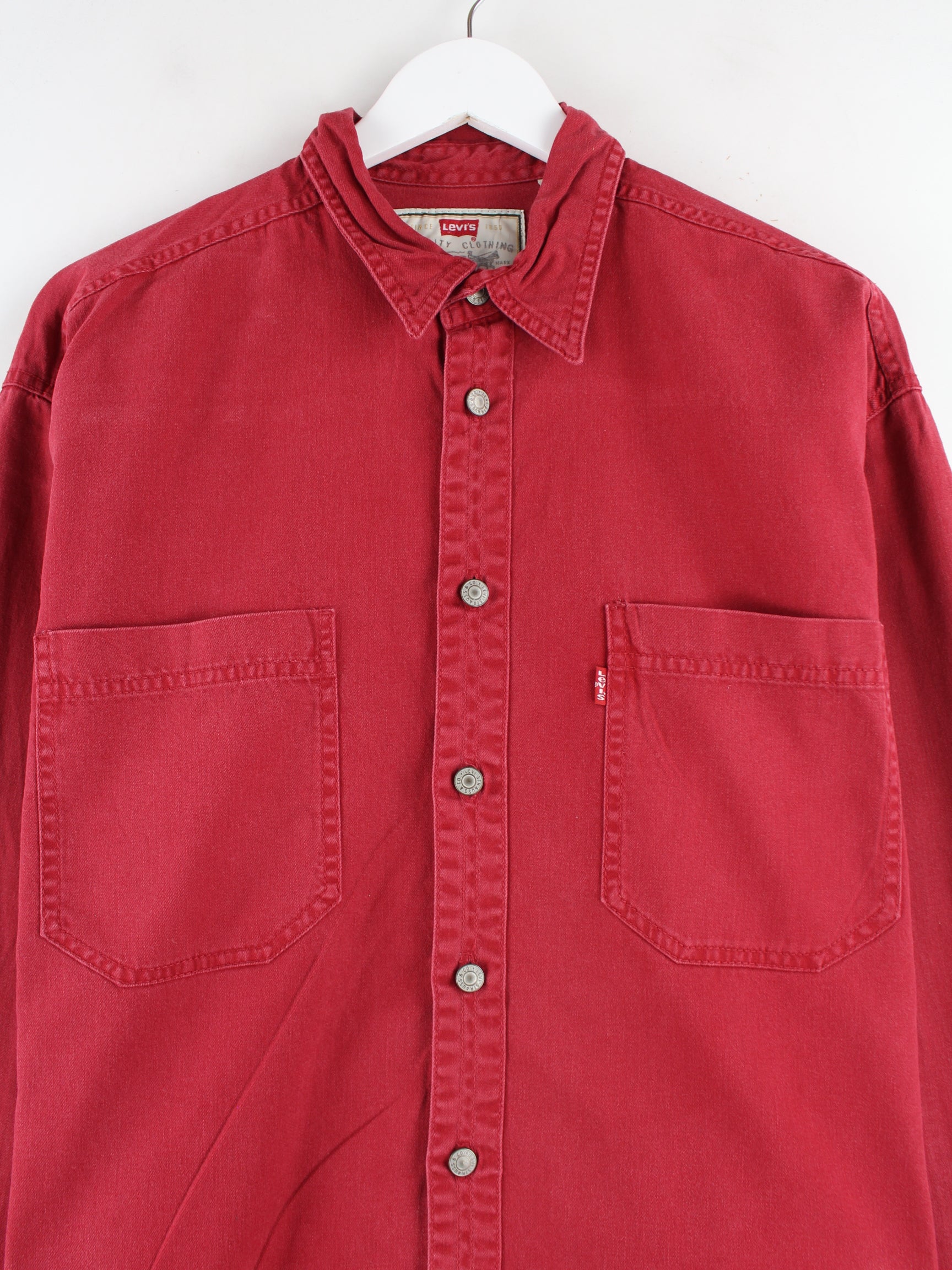 Casual shirt by Levi's in size XL from the 90's. It is made of cotton and available in red.
