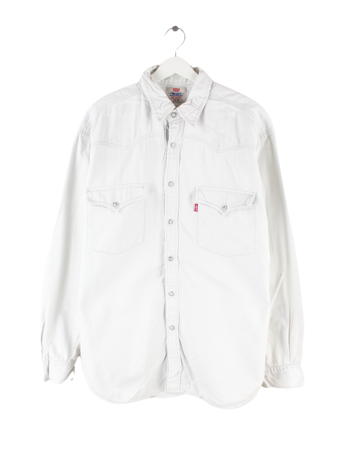 Graues Freizeit Hemd aus dem Hause Levi's aus den 90'ern in Größe L. Es ist aus Baumwolle angefertigt. Den Zustand würden wir als 'In Ordnung' bezeichnen (vergl. Bilder).