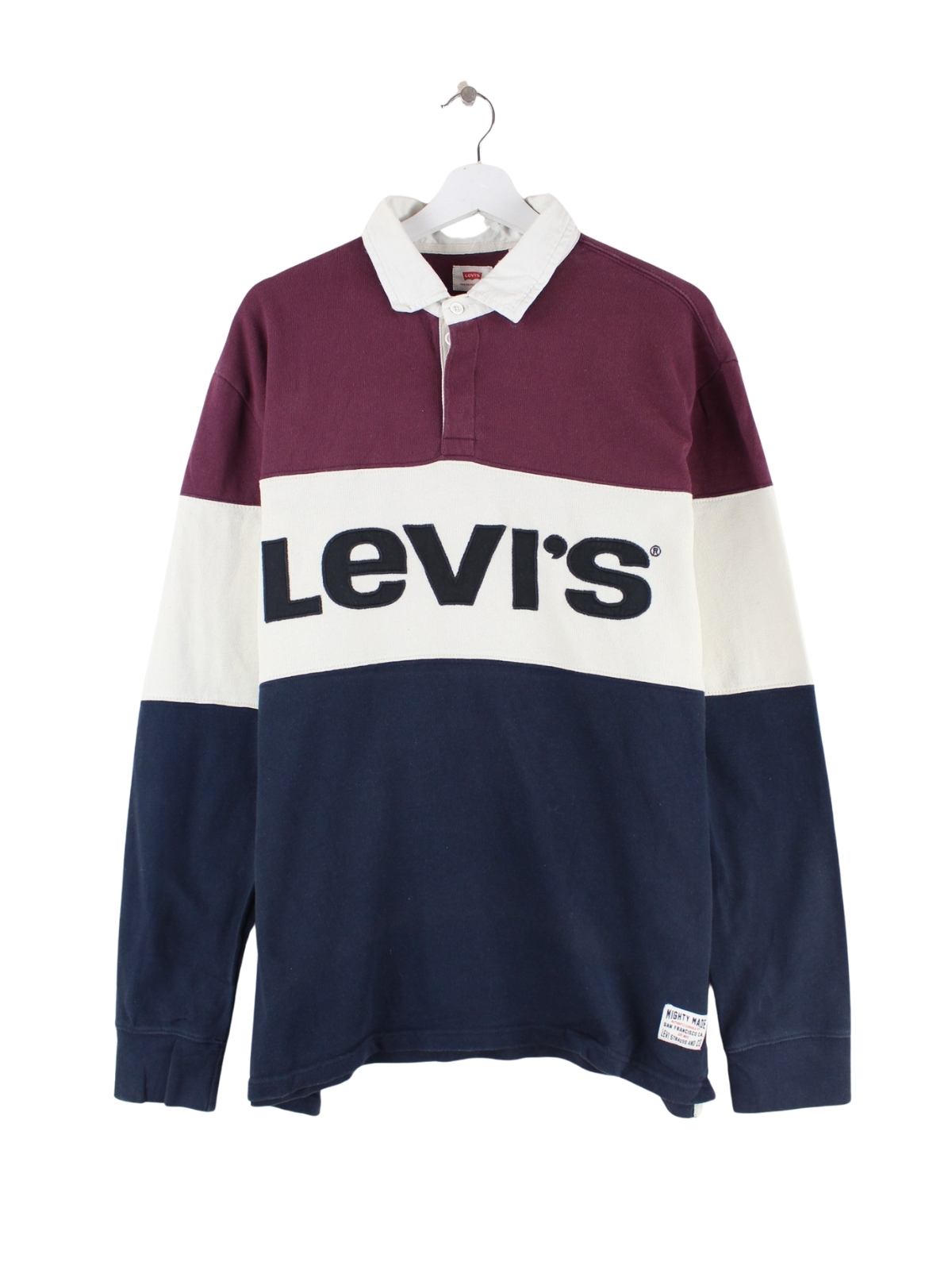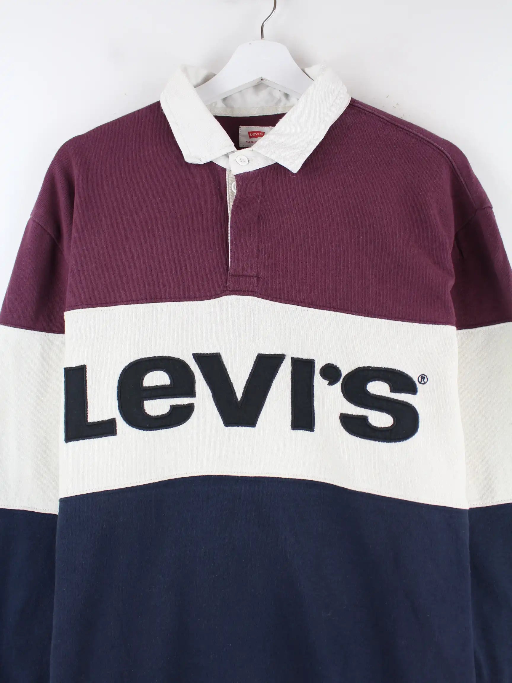 Mehrfarbiges Poloshirt mit gestickten Motiven der Marke Levi's in Größe L. Es ist aus Baumwolle angefertigt und in sehr gutem Zustand im Bestand.