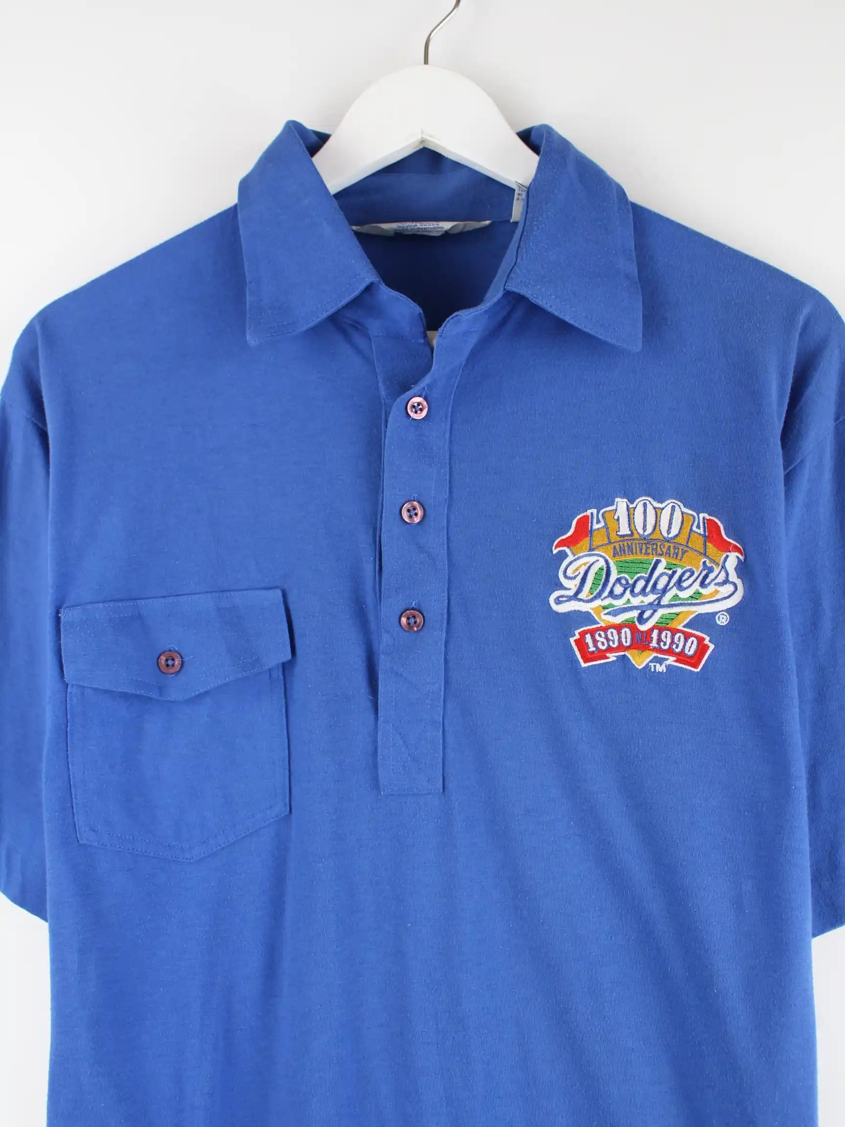 Logo 7 1990 Vintage Dodgers Single Stitch Polo Blau L