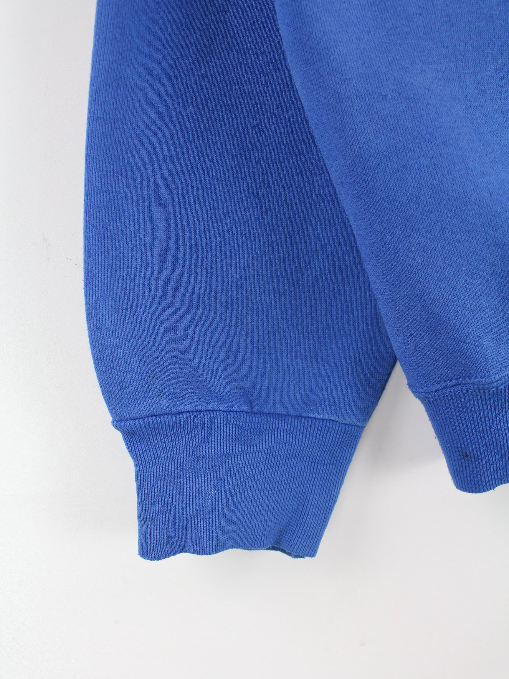 Blauer Sweater vom Label Logo 7 aus den 80'ern in Größe S. Er ist aus einer Baumwollmischung angefertigt. Den Zustand würden wir als 'In Ordnung' bezeichnen (vergl. Bilder).